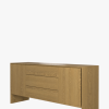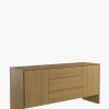 The Laura Ashley Ammanford 2 Door 3 Drawer Sideboard exemplifies a minimal modern design with clever but subtle features. The arched frame is chamfered back but then cleverly overlapped by the doors and drawers, which appear to float in front. To maintain minimal and clean lines, the drawers can be opened with push-latches made from a contrasting birch. Behind each push-latched door is an adjustable shelf.