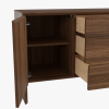 The Laura Ashley Ammanford 2 Door 3 Drawer Sideboard exemplifies a minimal modern design with clever but subtle features. The arched frame is chamfered back but then cleverly overlapped by the doors and drawers, which appear to float in front. To maintain minimal and clean lines, the drawers can be opened with push-latches made from a contrasting birch. Behind each push-latched door is an adjustable shelf.