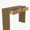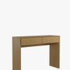 The Laura Ashley Ammanford 2 Drawer Console Table exemplifies a minimal modern design with clever but subtle features. The arched frame is chamfered back but then cleverly overlapped by the drawers which appear to float in front. To maintain minimal and clean lines, the drawers can be opened with push-latches made from a contrasting birch.