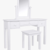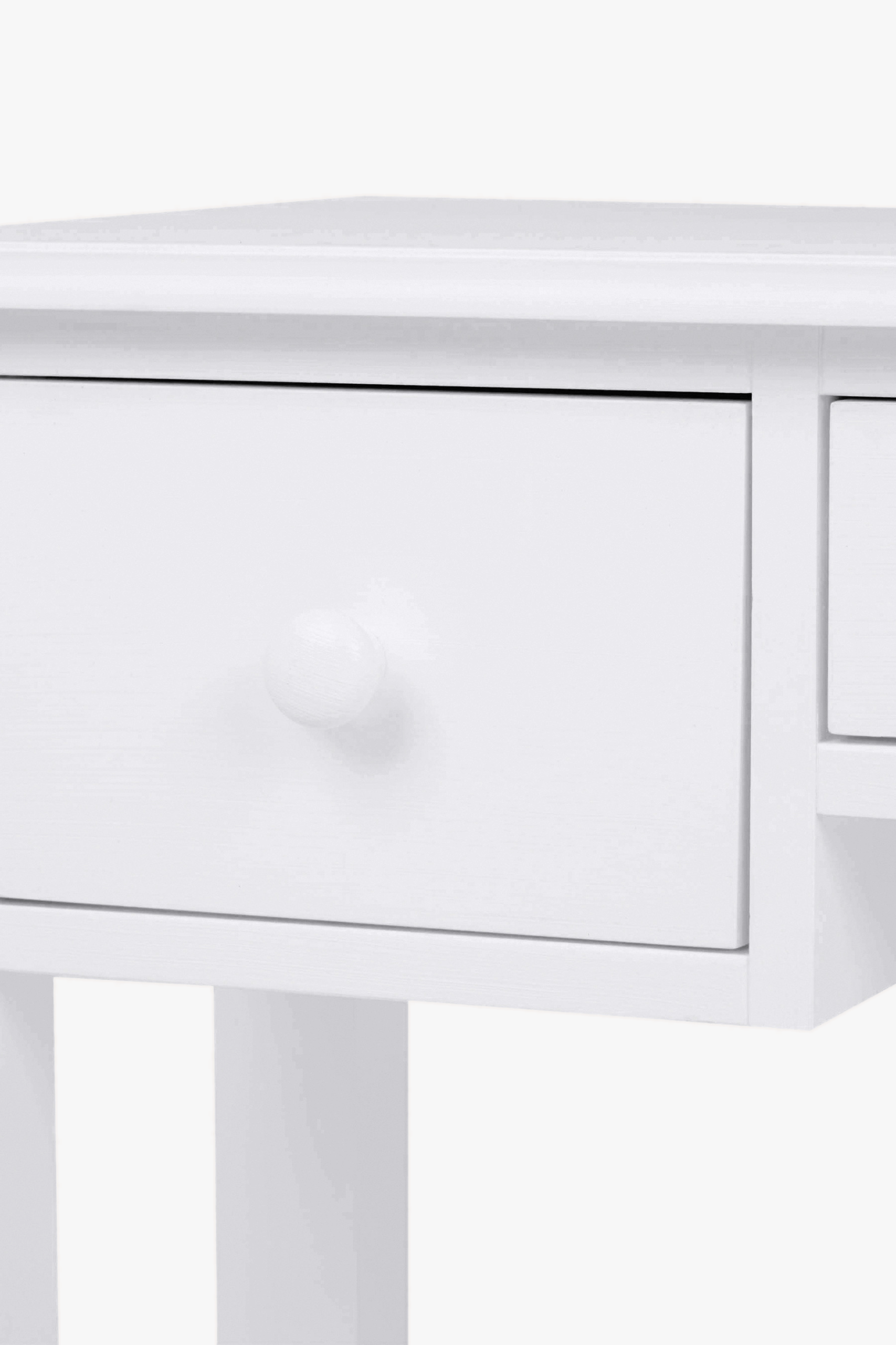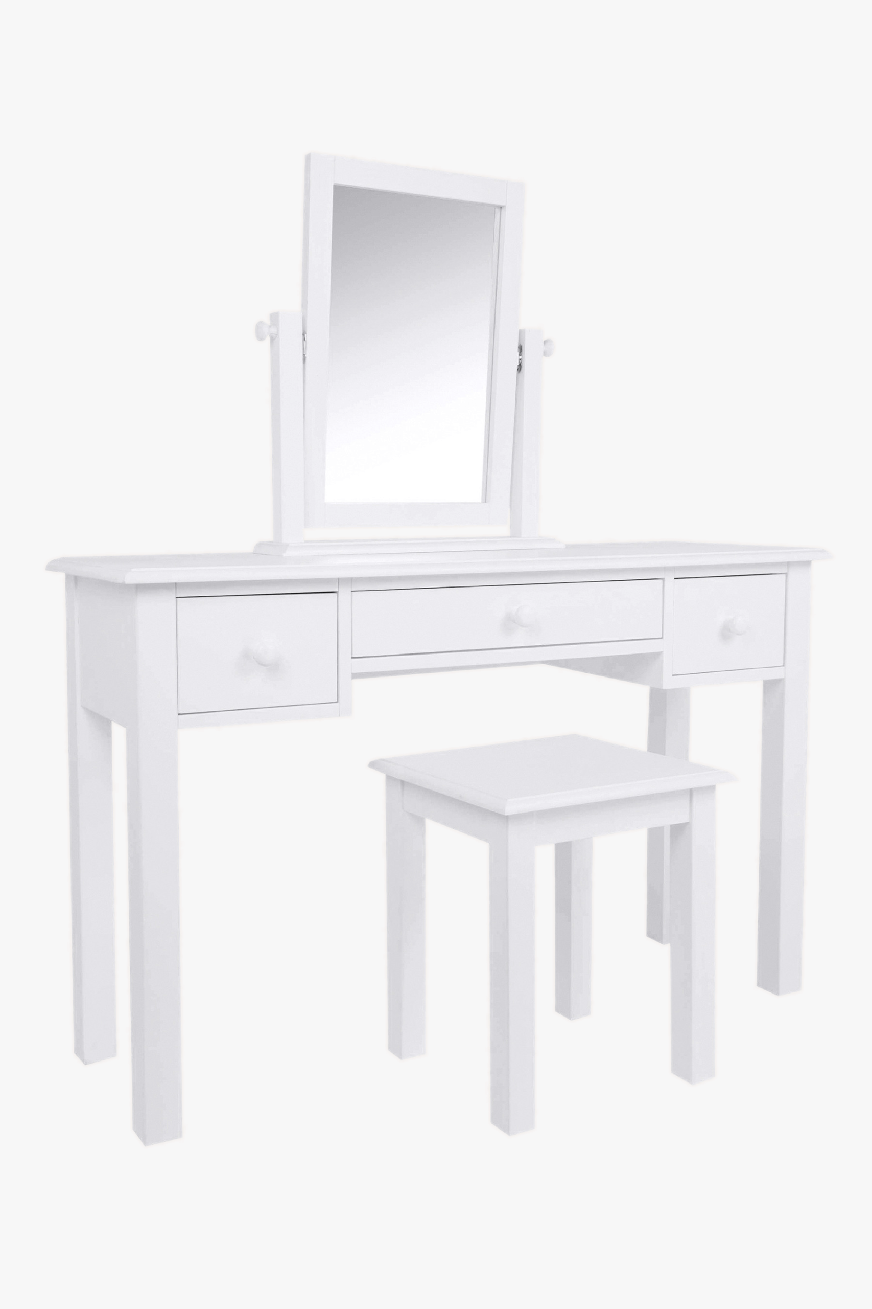 The Laura Ashley Ashwell 3 Drawer Dressing Table and Stool Set combines traditional design with painted, modern materials. It features turned wooden handles, wooden runners, a profiled top and a bottom plinth. There are three well-proportioned drawers and the item is hand painted inside and out. This set is versatile enough to work in any bedroom or dressing room theme.