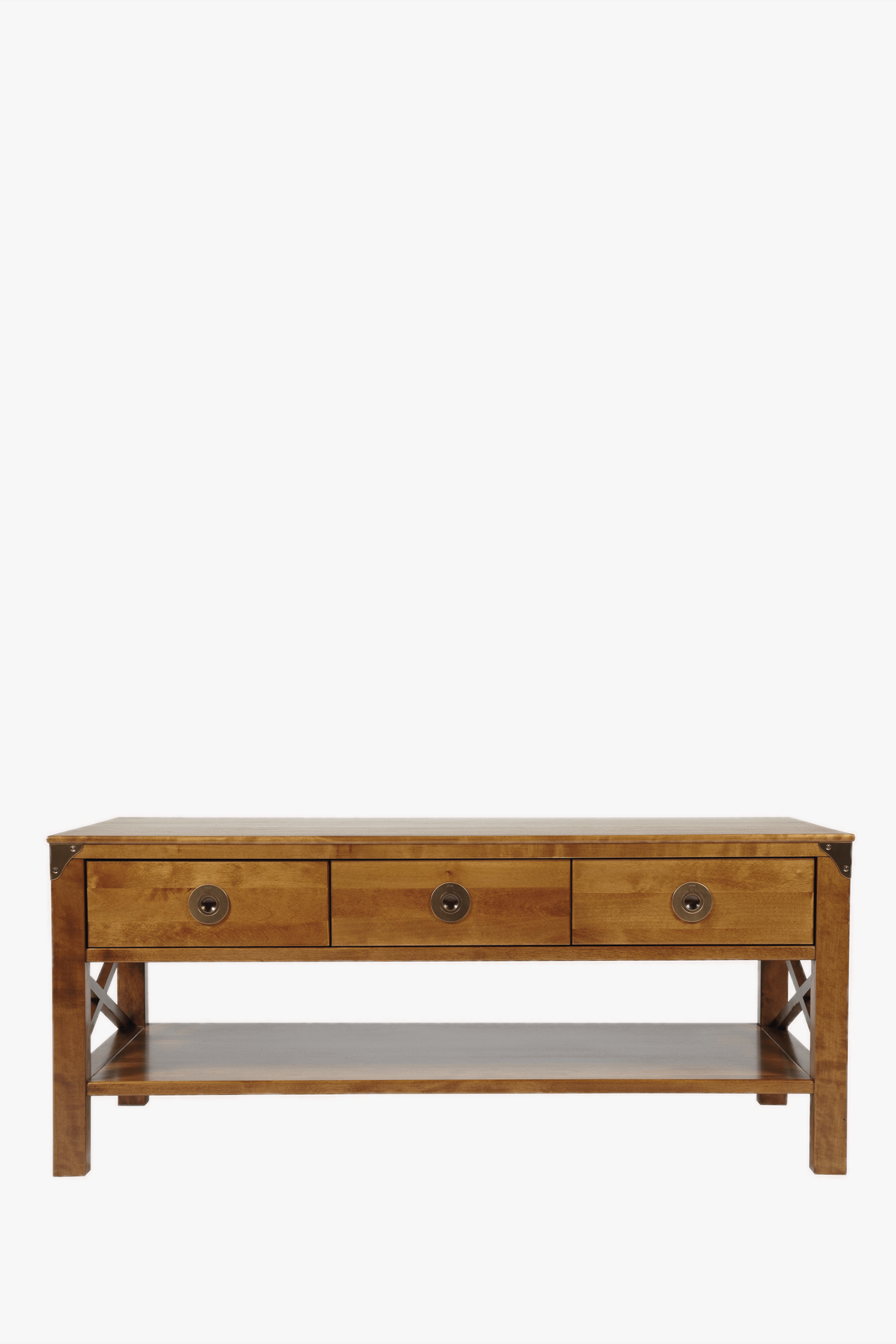 The Laura Ashley Balmoral 3 Drawer Coffee Table features a distinctive cross design on each side and comprises three good-sized drawers and the look is completed with a fixed shelf underneath.