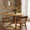 Fusing both contemporary and more traditional design elements; the Laura Ashley Brecon Round Extending Dining Table features an elegantly turned solid oak pedestal and four equally spaced legs crafted in a gentle arc shape. The generously sized table top has a chamfered edge and is finished in a rich European oak veneer and boasts a useful centre leaf which is stored separately. The table has a natural oil finish which helps enhance the characteristics of the oak. Only the top needs to be attached to begin enjoying this piece; full assembly is not required.