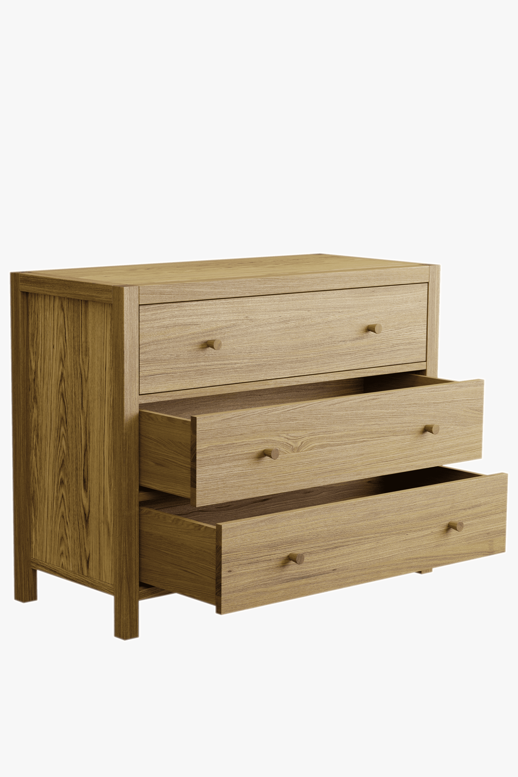 Read moreThe Laura Ashley Brompton 3 Drawer Chest combines simple lines and styling in oak solids and veneers, finished with a clear, protective oil. The chest features three equal-sized deep drawers on hidden metal runners.