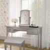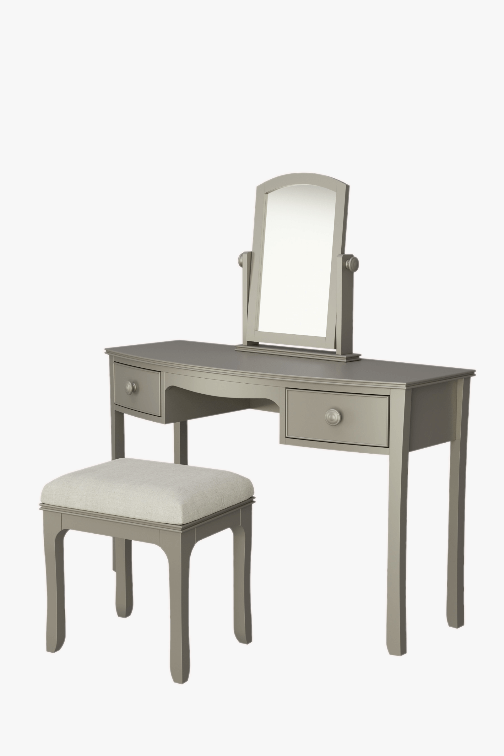 An undeniably stately Georgian-inspired design, the Laura Ashley Broughton 2 Drawer Dressing Table Set will transform any bedroom with its grandeur. The dressing table features two usefully sized drawers and is complemented by an upholstered stool and a coordinating mirror. This classic look is crafted from solid birch as well as modern materials and features turned wooden handles and has a low maintenance painted finish.