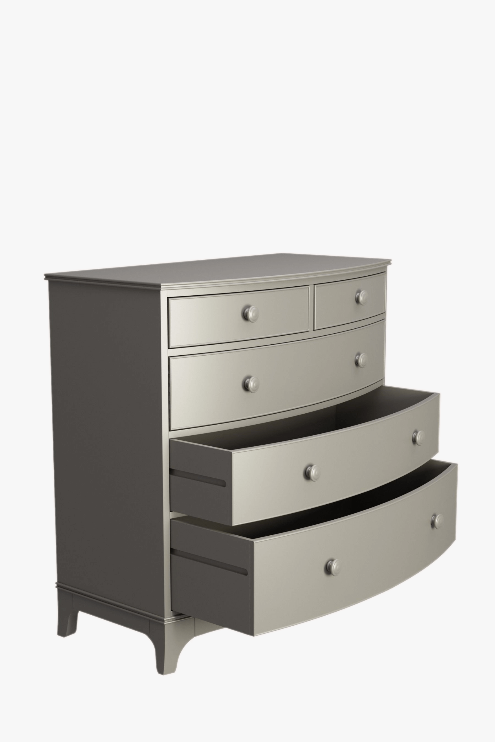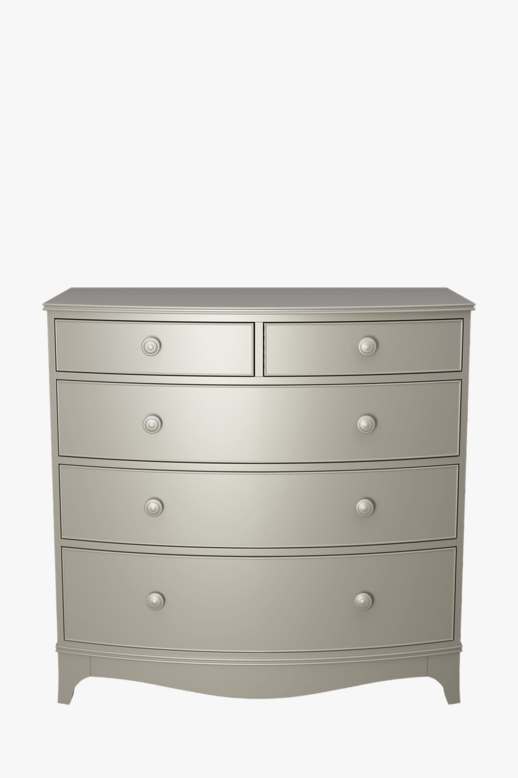 An undeniably stately Georgian-inspired design, the Laura Ashley Broughton 2+3 Drawer Chest will transform any bedroom with its grandeur. It comprises two small and three good-sized drawers providing plentiful storage space. This classic look is crafted from solid birch as well as modern materials and features turned wooden handles and has a low maintenance painted finish. Only the drawers need to be inserted to begin enjoying this piece; full assembly is not required.
