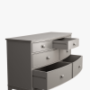 An undeniably stately Georgian-inspired design, the Laura Ashley Broughton 3+4 Drawer Chest will transform any bedroom with its grandeur. It comprises three small and four good-sized drawers providing plentiful storage space. This classic look is crafted from solid birch as well as modern materials and features turned wooden handles and has a low maintenance painted finish. Only the drawers need to be inserted to begin enjoying this piece; full assembly is not required.