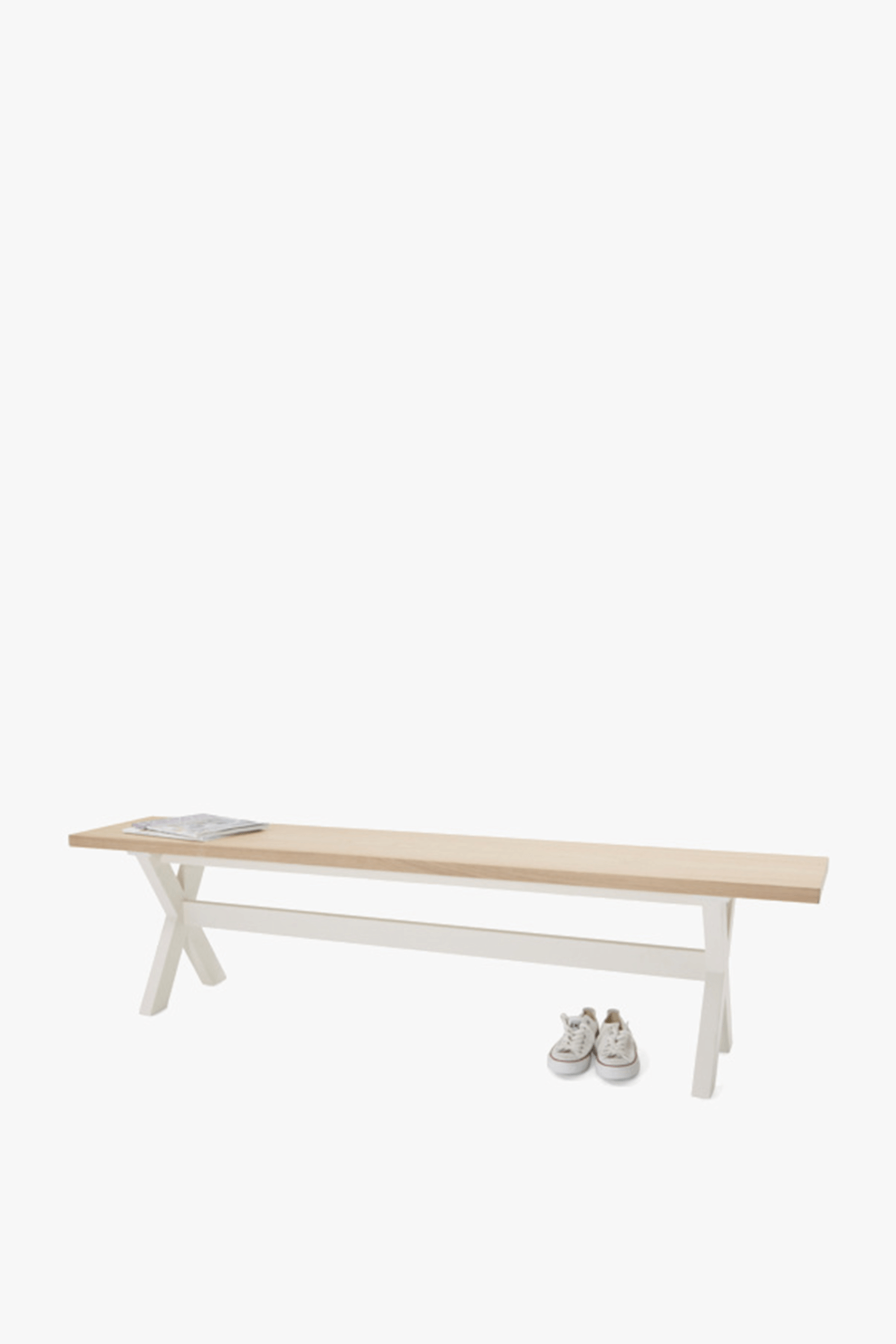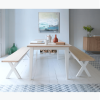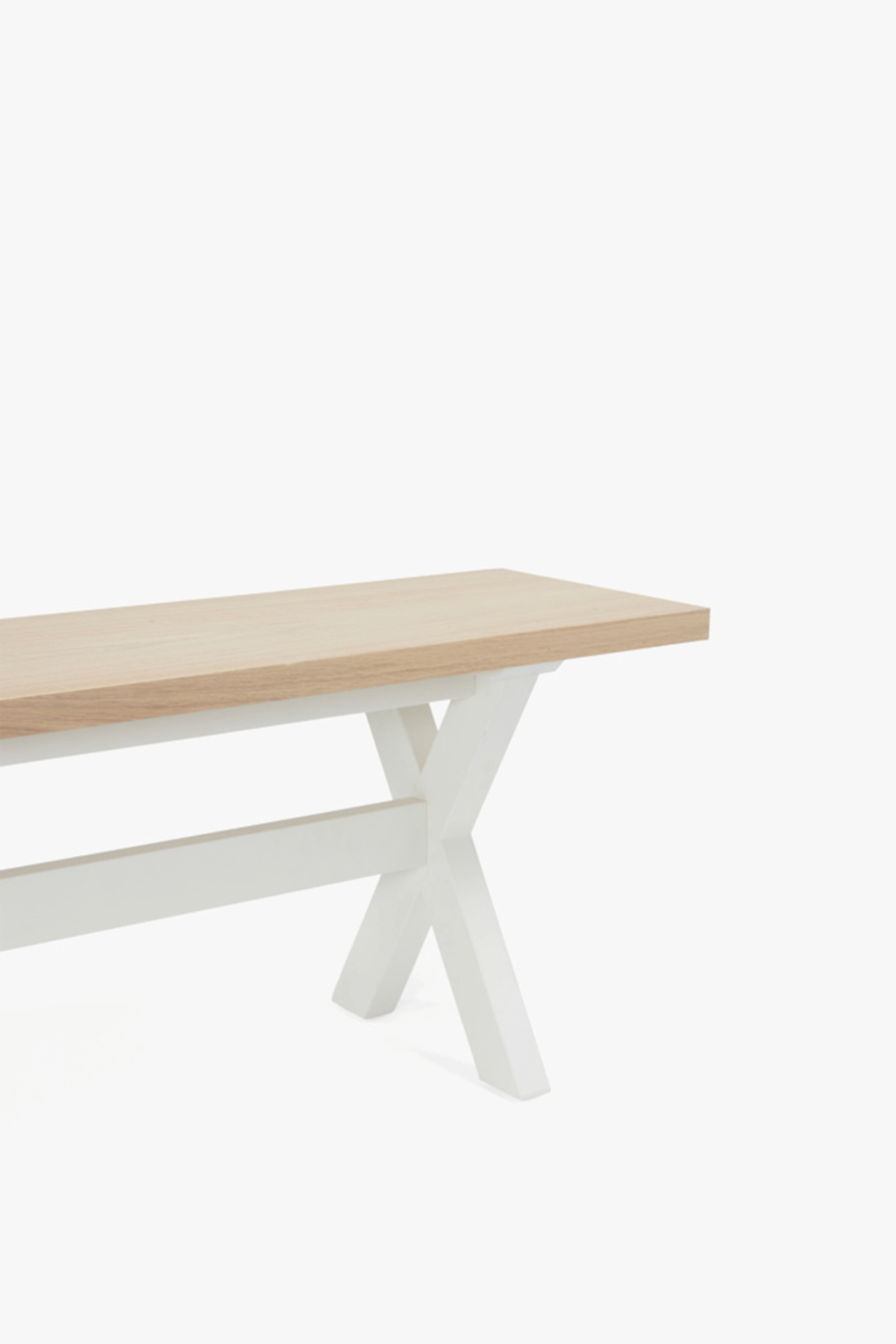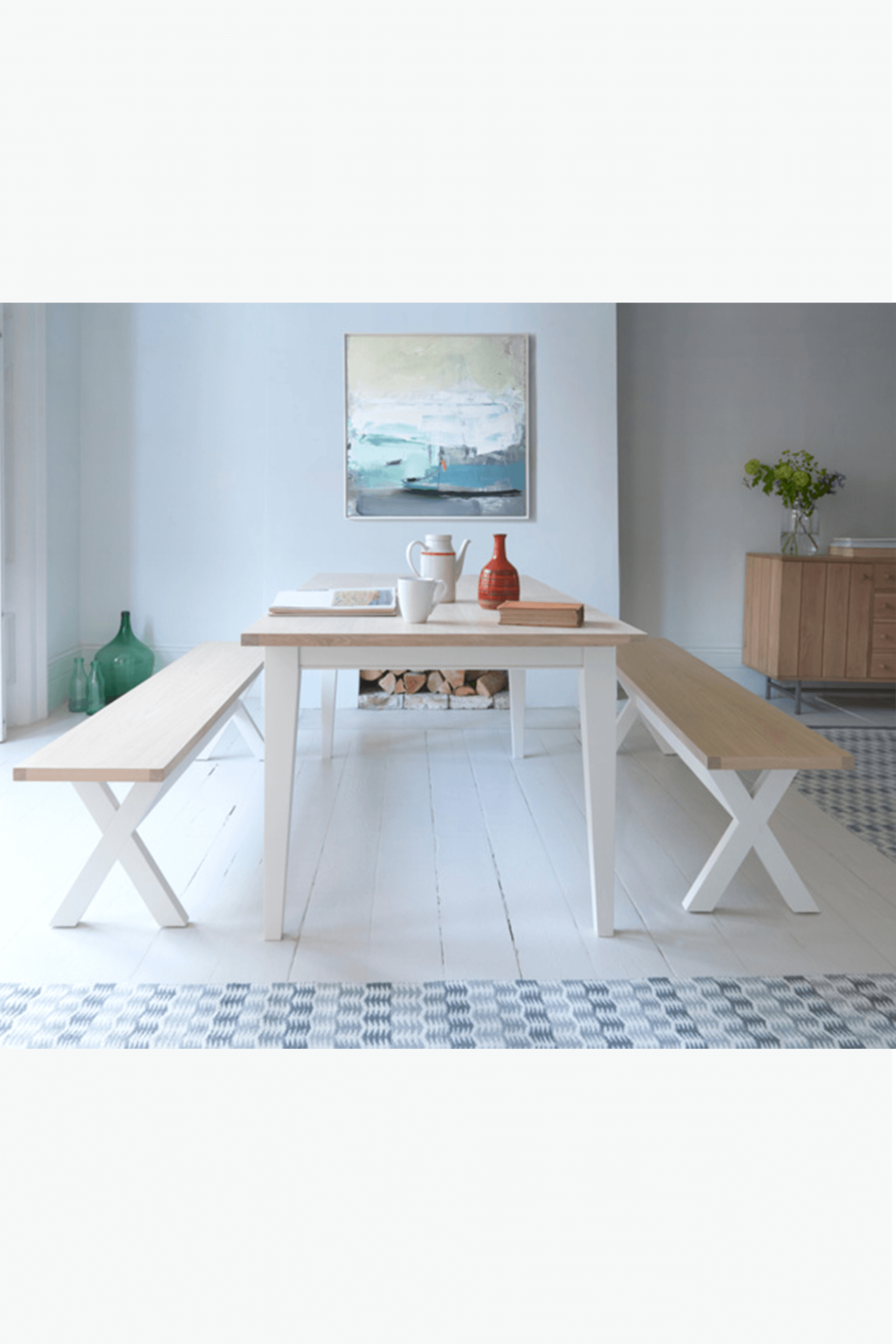 Read moreTop made from sustainably sourced oak. Legs finished in a lovely off-white heritage paint. Humdinger table & Chops bench designed to be the same length so there's lots of space for extra bottoms.