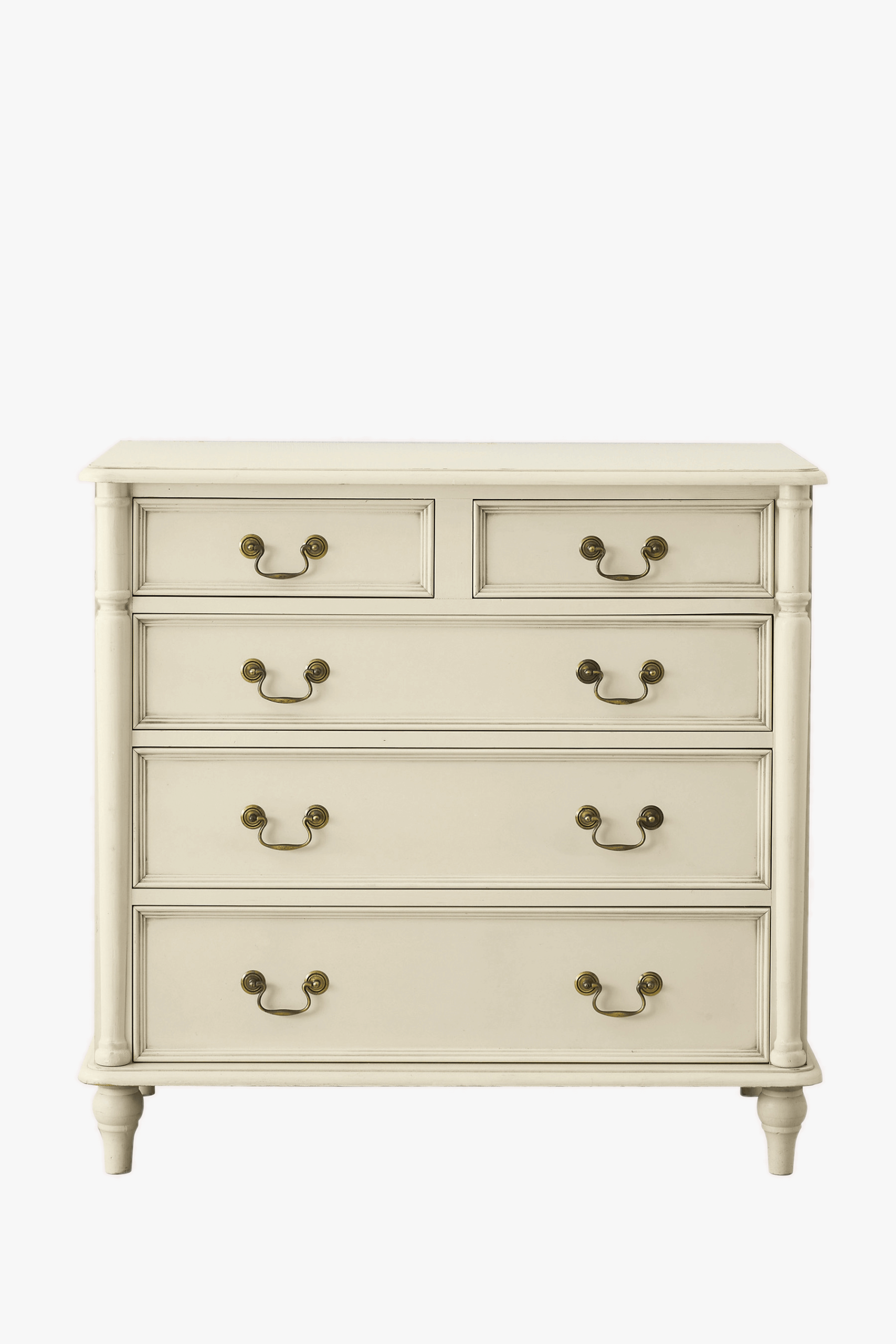 Timeless and elegant, the Clifton 2+3 Drawer Chest boasts a hand applied patina to create a unique aged effect which is complemented by antiqued handles. The chest combines two small drawers with three double width drawers offering ample storage space.