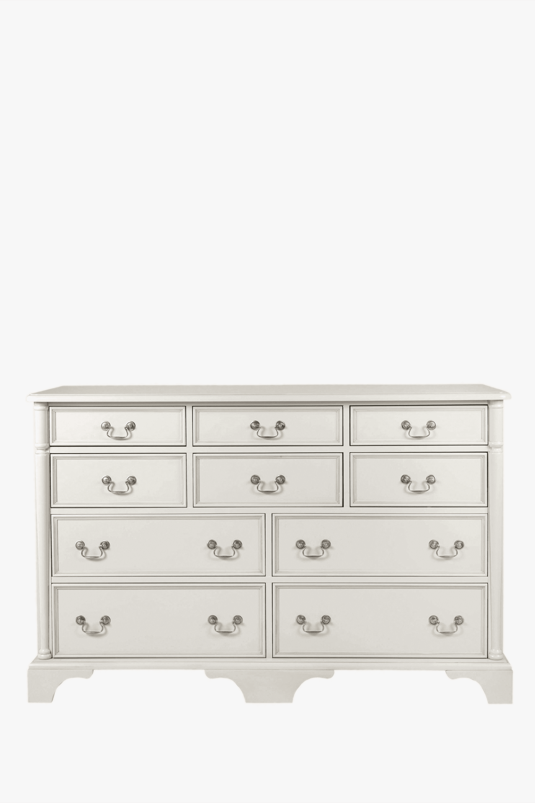 Timeless and elegant, the Clifton 6+4 Drawer Chest boasts a hand applied patina to create a unique aged effect which is complemented by antiqued handles. This handsome chest comprises six small drawers and four large drawers offering a wealth of storage space.