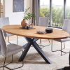 Table tops can be selected in either solid European oak or solid North American black walnut – with the option of straight or chamfered edges for each. Personal preferences can be even further tailored with contrasted fillers for the rustic tops, or simply with open knots and cracks to further accentuate the hallmarks of these characterful timbers. Cutting edge finishes in oiled and lacquered compositions help to offer durability and pleasing patina. Table leg available in wood or number of metal finishes.