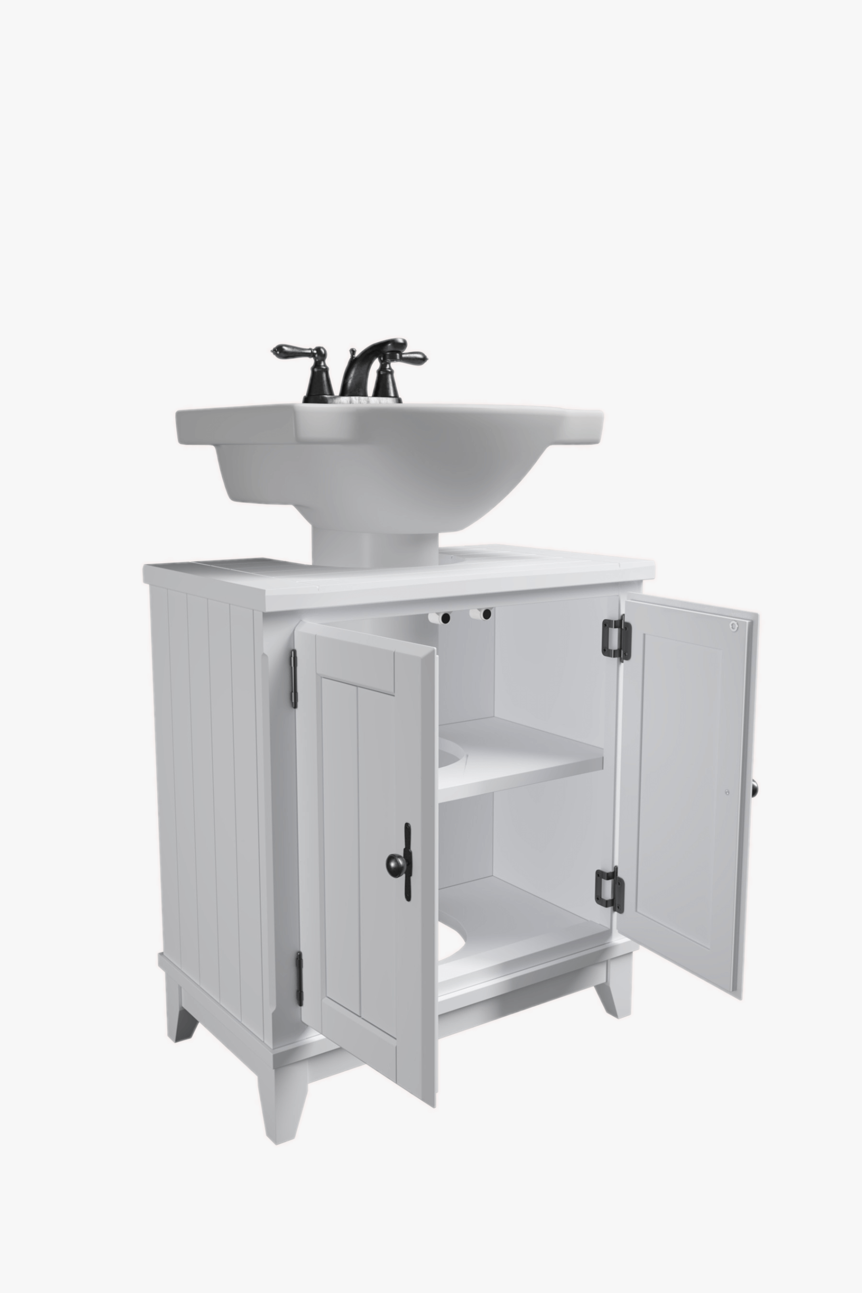 With a hand brushed painted and lacquered finish creating an informal yet stylish look, the Laura Ashley Devon 2 Door Basin Cabinet complements the Range’s bedroom furniture and is ideal for en suite and family bathrooms alike. The piece is designed specifically to fit under most UK pedestal washbasins with a 23cm wide and 23cm deep cut-out. Behind the two doors, there is plenty of space for cleaning products and bathroom essentials, facilitated by a full-width adjustable shelf. The unit comprises special materials and extra finishing to ensure that it is durable in humid bathroom environments.