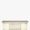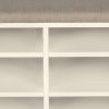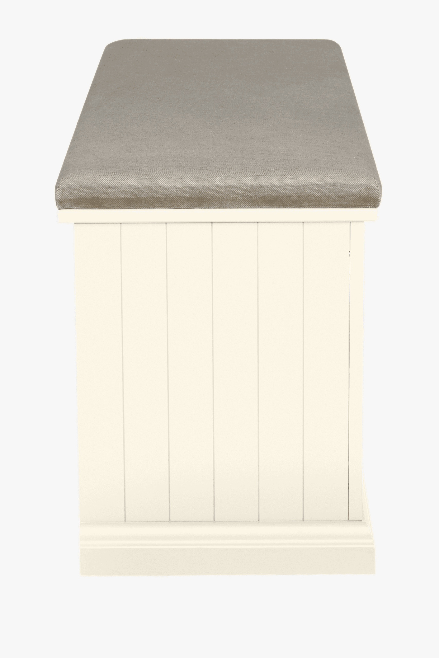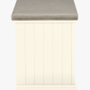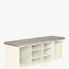 Classically elegant, the hand finished Laura Ashley Dorset Shoe Storage Bench features a gentle chalky finish which is complemented by the upholstered seat. The individual character of the piece is further enhanced by lightly distressed edges. There are eight storage compartments and the four shelves are all adjustable.