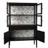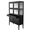Elmhurst range is ideal for displaying your prized objects and collections and keeping them safe. The 6 Door 2 Drawer Display Unit provides lots of varied storage areas with a background of the beautiful Attleton print in the upper section. A fixed shelf divides the glazed area whilst traditionally rail-mounted drawers and a lower cupboard provide more discrete storage. The piece is carefully constructed with solid elm and oak veneer before being wire-brushed to create a unique texture and finished with a rich black paint and clear lacquer. Traditional pivot hinges and antiqued handles complete the effect.