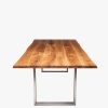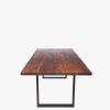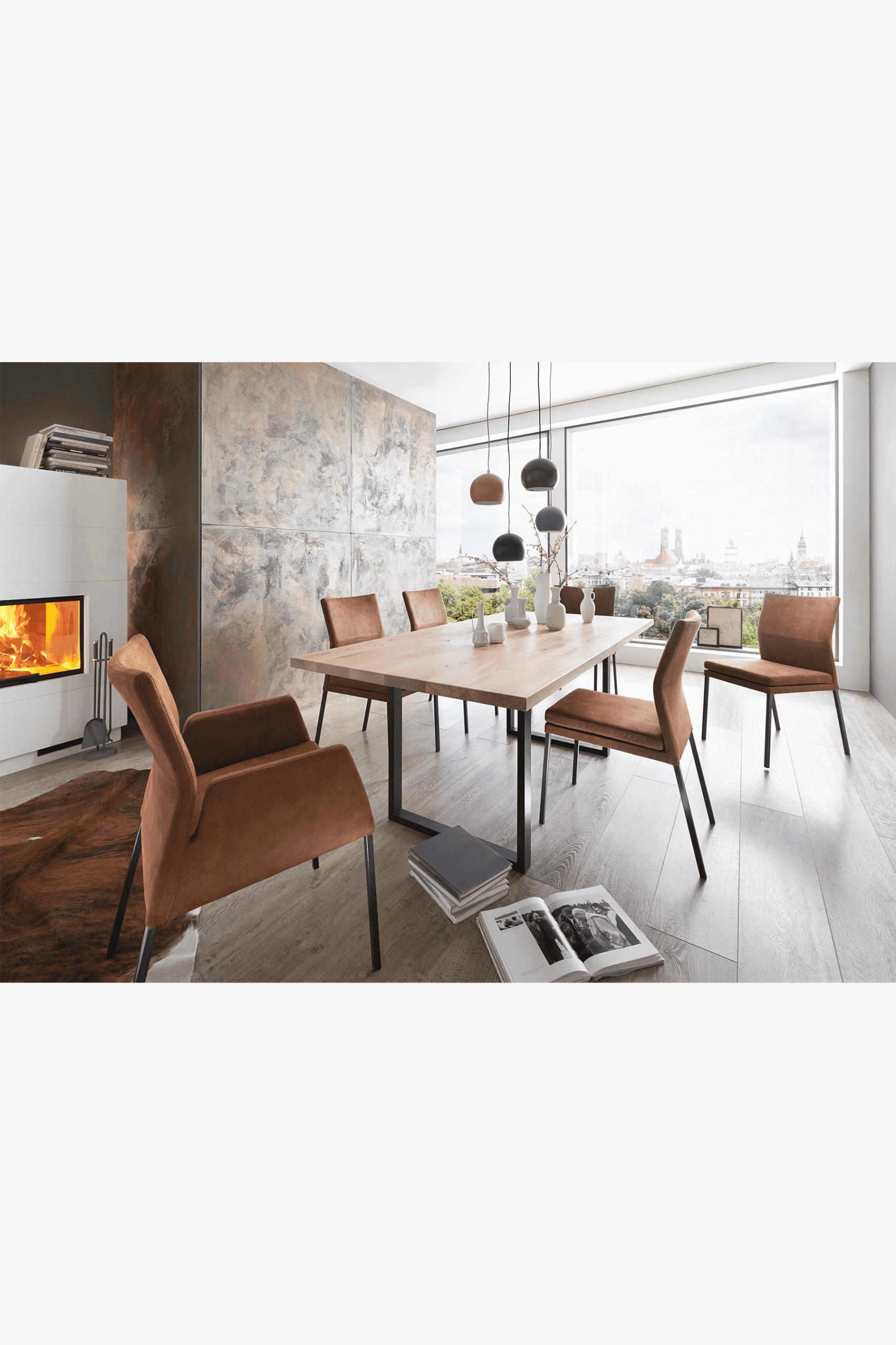Produced in Europe, this is an extensive collection of dining and living furniture, fusing the beauty and nature of wood and metal in a contemporary style. Table tops can be selected in either solid European oak or solid North American black walnut – with the option of straight or natural wavy edges for each. Personal preferences can be even further tailored with contrasted fillers for the rustic tops, or simply with open knots and cracks to further accentuate the hallmarks of these characterful timbers. Cutting edge finishes in oiled and lacquered compositions help to offer durability and pleasing patina. The options of bases and pedestals are the most comprehensive in the marketplace, boasting choices in wood and a wide variety of metal finishes to achieve your perfect combination. Be it an industrial look, sleek or natural simplicity, the exhaustive options list has the solution. Seating options include supremely comfortable chairs to echo the table styles – upholstered both in natural wool felt and leather – and with further choices such as swivel actions. Benches are also available, with or without backs, and with choices of corner arrangements for a more flowing and relaxed dining environment, and with bases to match your chosen dining table. Furthermore, a range of cabinet pieces to include sideboards, TV units, vitrines and more have been created to complete the collection with metal and wood feet and plinths to match tables and cohesively draw the elements together. Unique features such as hidden drawers along with options of illuminated shelves add personality and practicality to the range. Crossing the boundaries of many interior themes and schemes, the collection offers style, character, presence and a multitude of options to offer a contemporary yet timeless and adaptable collection of furniture made to the highest standard and without compromise. Table tops can be selected in either solid European oak or solid North American black walnut – with the option of straight or natural wavy edges for each. Personal preferences can be even further tailored with contrasted fillers for the rustic tops, or simply with open knots and cracks to further accentuate the hallmarks of these characterful timbers. Cutting edge finishes in oiled and lacquered compositions help to offer durability and pleasing patina. The options of bases and pedestals are the most comprehensive in the marketplace, boasting choices in wood and a wide variety of metal finishes to achieve your perfect combination. Be it an industrial look, sleek or natural simplicity, the exhaustive options list has the solution.