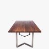 Produced in Europe, this is an extensive collection of dining and living furniture, fusing the beauty and nature of wood and metal in a contemporary style. Table tops can be selected in either solid European oak or solid North American black walnut – with the option of straight or natural wavy edges for each. Personal preferences can be even further tailored with contrasted fillers for the rustic tops, or simply with open knots and cracks to further accentuate the hallmarks of these characterful timbers. Cutting edge finishes in oiled and lacquered compositions help to offer durability and pleasing patina. The options of bases and pedestals are the most comprehensive in the marketplace, boasting choices in wood and a wide variety of metal finishes to achieve your perfect combination. Be it an industrial look, sleek or natural simplicity, the exhaustive options list has the solution. Seating options include supremely comfortable chairs to echo the table styles – upholstered both in natural wool felt and leather – and with further choices such as swivel actions. Benches are also available, with or without backs, and with choices of corner arrangements for a more flowing and relaxed dining environment, and with bases to match your chosen dining table. Furthermore, a range of cabinet pieces to include sideboards, TV units, vitrines and more have been created to complete the collection with metal and wood feet and plinths to match tables and cohesively draw the elements together. Unique features such as hidden drawers along with options of illuminated shelves add personality and practicality to the range. Crossing the boundaries of many interior themes and schemes, the collection offers style, character, presence and a multitude of options to offer a contemporary yet timeless and adaptable collection of furniture made to the highest standard and without compromise. Table tops can be selected in either solid European oak or solid North American black walnut – with the option of straight or natural wavy edges for each. Personal preferences can be even further tailored with contrasted fillers for the rustic tops, or simply with open knots and cracks to further accentuate the hallmarks of these characterful timbers. Cutting edge finishes in oiled and lacquered compositions help to offer durability and pleasing patina. The options of bases and pedestals are the most comprehensive in the marketplace, boasting choices in wood and a wide variety of metal finishes to achieve your perfect combination. Be it an industrial look, sleek or natural simplicity, the exhaustive options list has the solution.