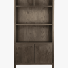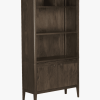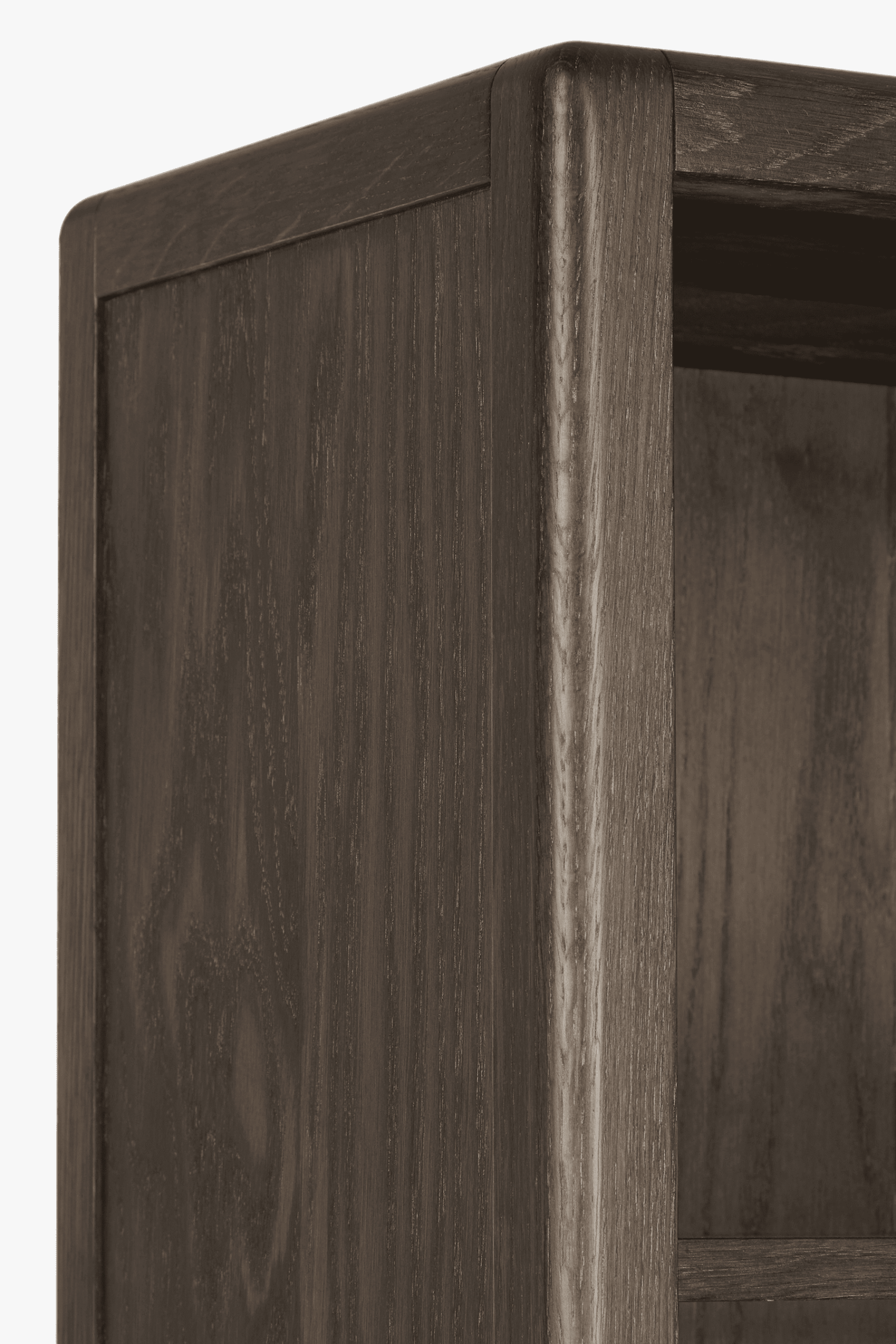Crafted from oak the Laura Ashley Farnhill 2 Door Display Cabinet expertly combines soft edges and elegantly tapered legs and a dark stained finish applied to accentuate the beautifully grained wood. This unit comprises one full width shelf and two half width shelves. Furthermore, there is an adjustable shelf in the enclosed lower storage section secreted behind a pair of soft close doors. Only the top half needs to be positioned and attached to the base to begin enjoying this piece; full assembly is not required. 1 adjustable internal shelf