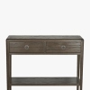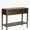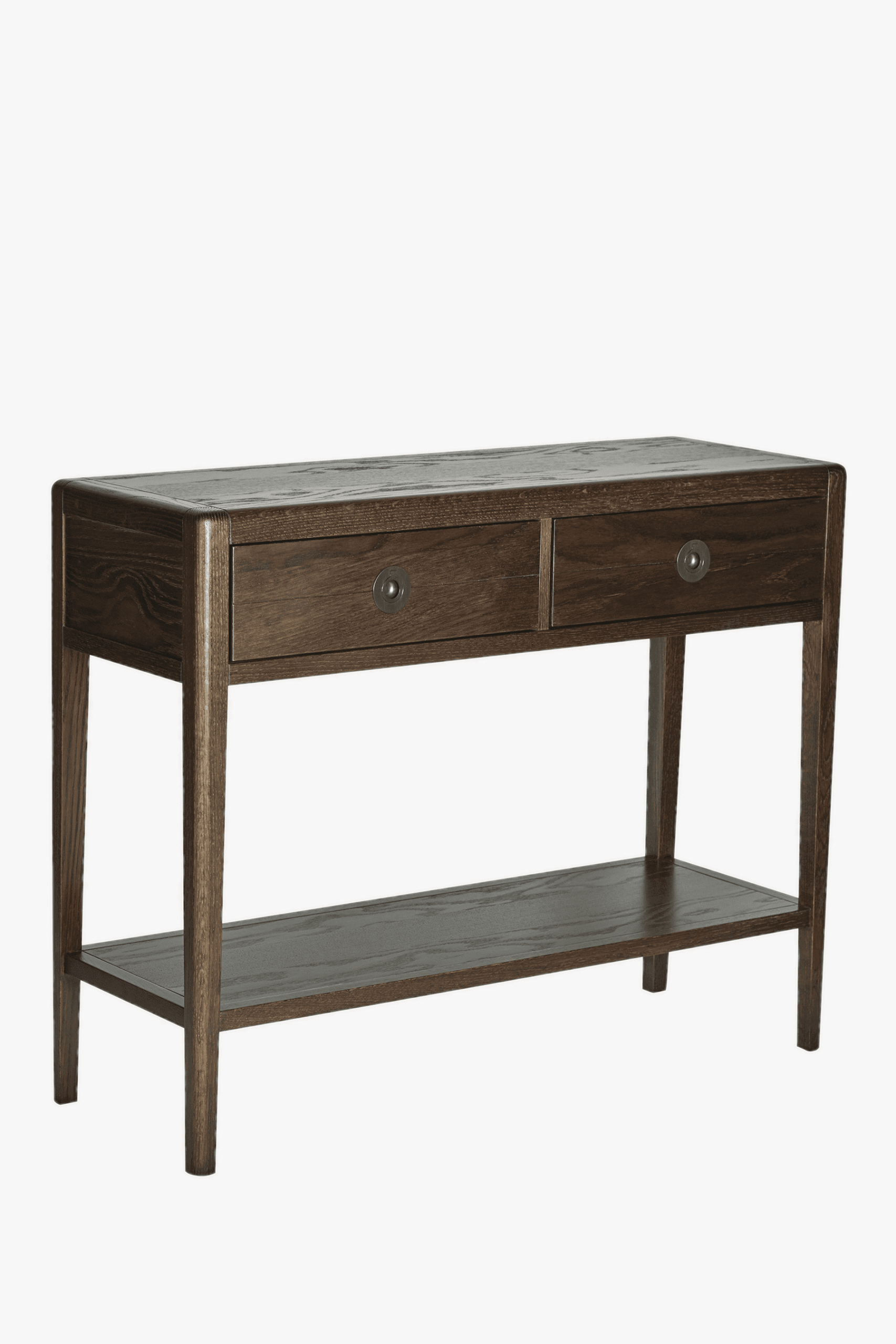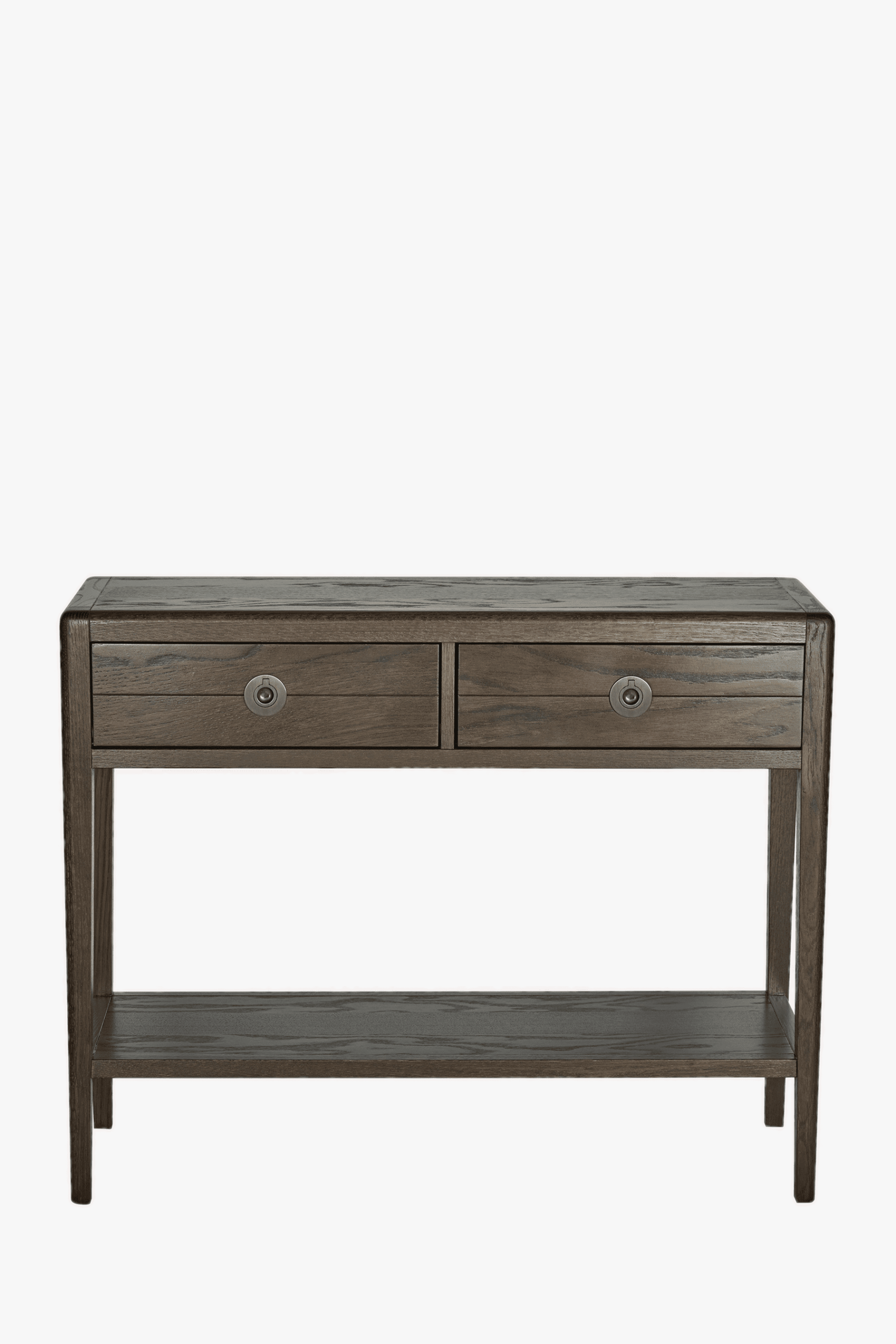 Crafted from oak the Laura Ashley Farnhill 2 Drawer Console Table expertly combines soft edges and elegantly tapered legs and a dark stained finish applied to accentuate the beautifully grained wood. The table comprises two good-sized drawers as well as a lower fixed shelf making it the perfect space for a table lamp. 1 adjustable internal shelf