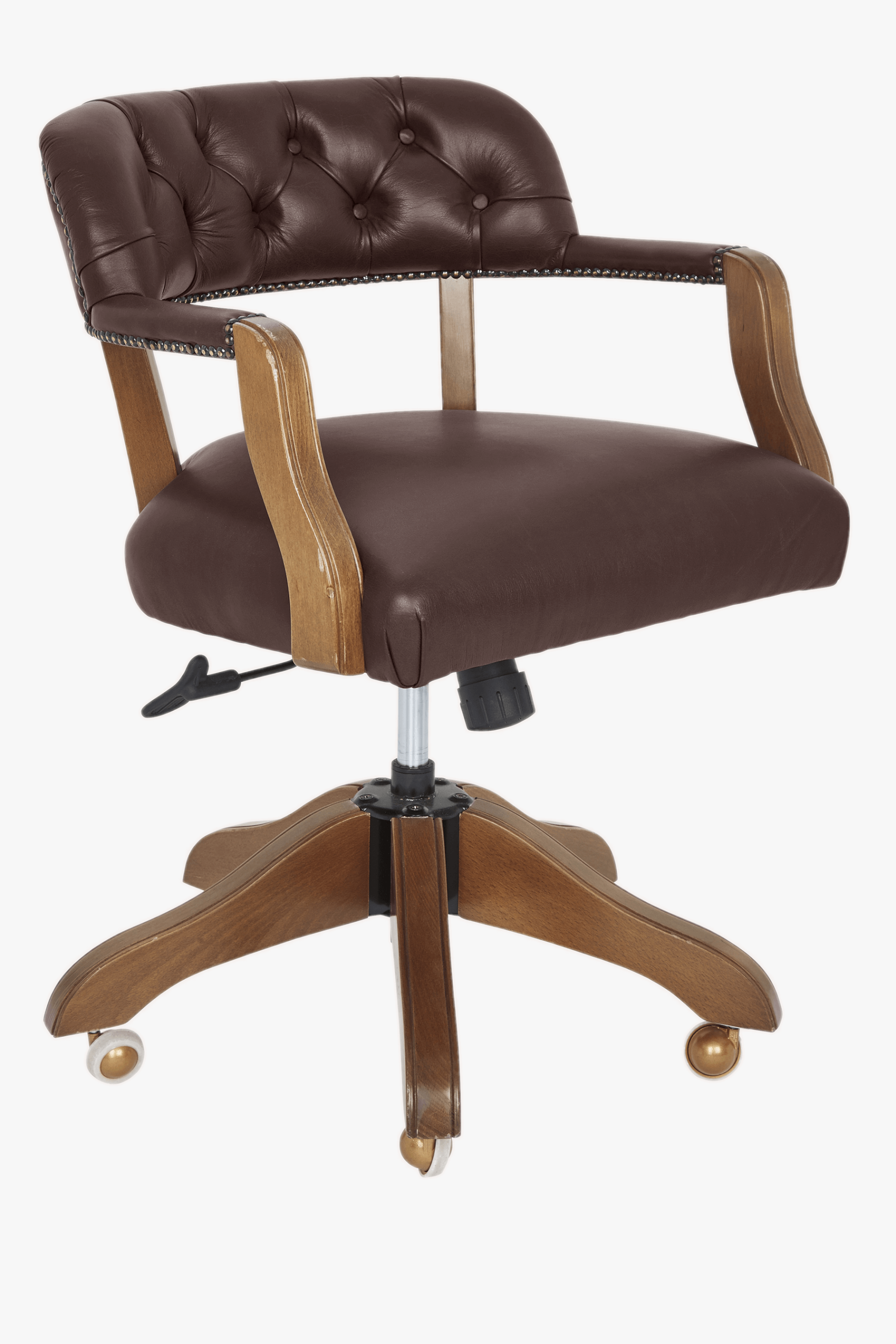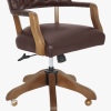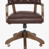 The Laura Ashley Franklin Office Swivel Chair is upholstered in a beautiful leather evoking real charm and the look is embellished with brass studding. It has a sprung seat for extra comfort and is fitted with a swivel and tilt mechanism. The chair features a five leg star base crafted from solid timber with brass castors to complete the look.