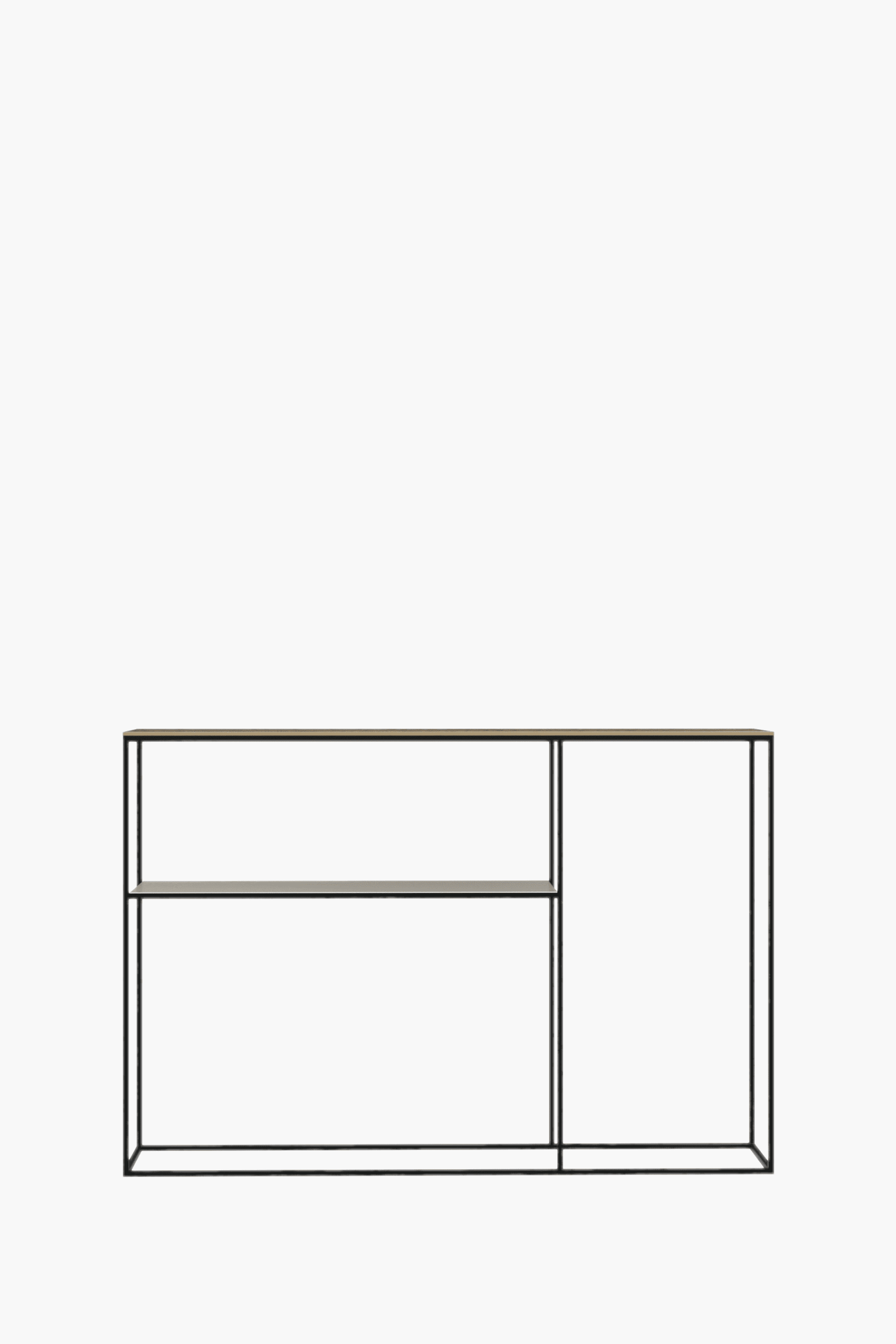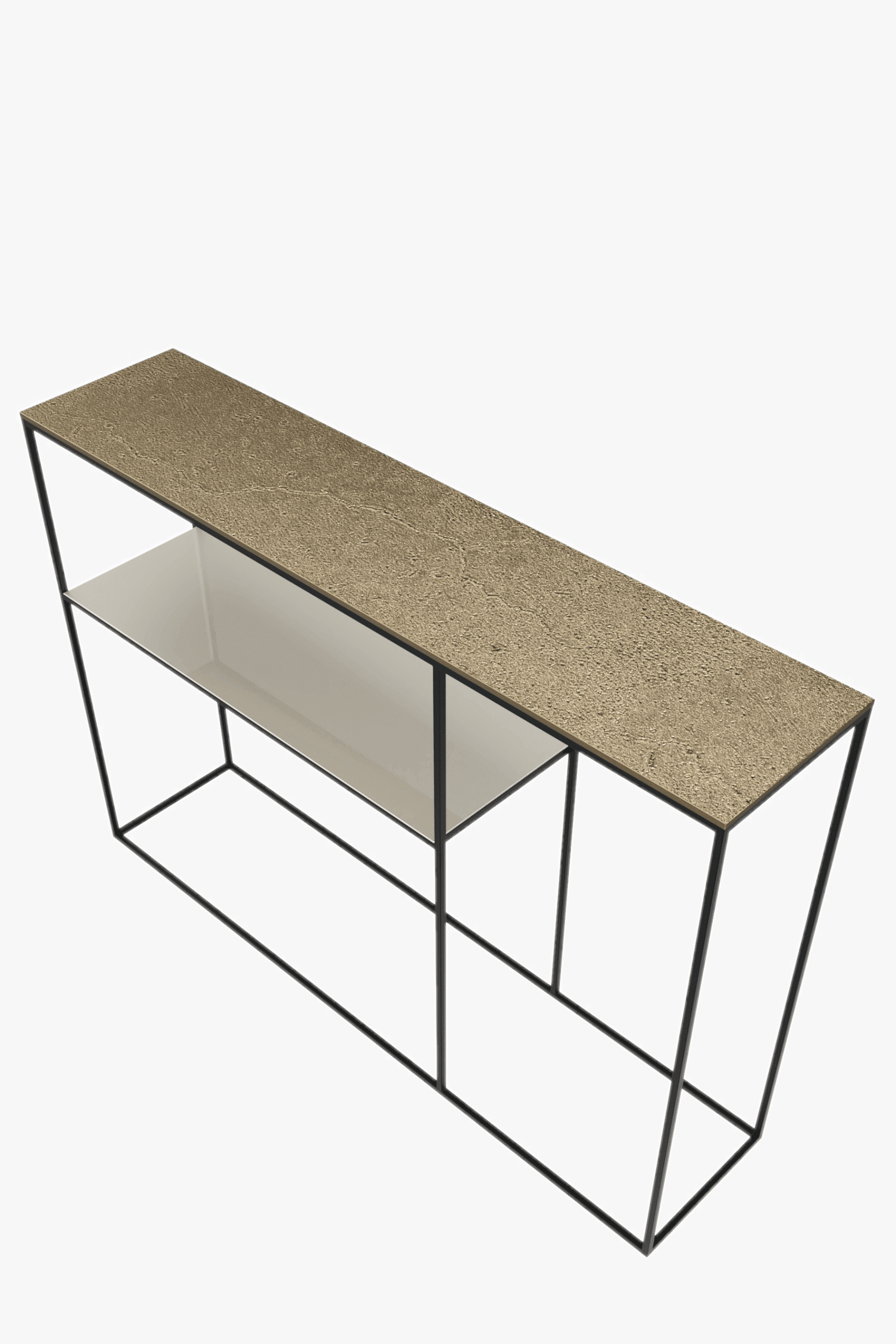 Perfectly formed, this collection of five occasional items would complement well with other looks in the home. And with the contrasting nature of the two finishes on each piece, they are unique in both their visual appearance and appeal. The frames of the Antique Brass & Pebble variant are carefully fabricated from square steel rod with a black powder-coated finish. The tops are uniquely sand-cast in aluminium and finished with an antique brass effect so that no two are alike. The lower shelves and small table tops are sheet steel with a pebble colour, enamel effect finish.