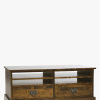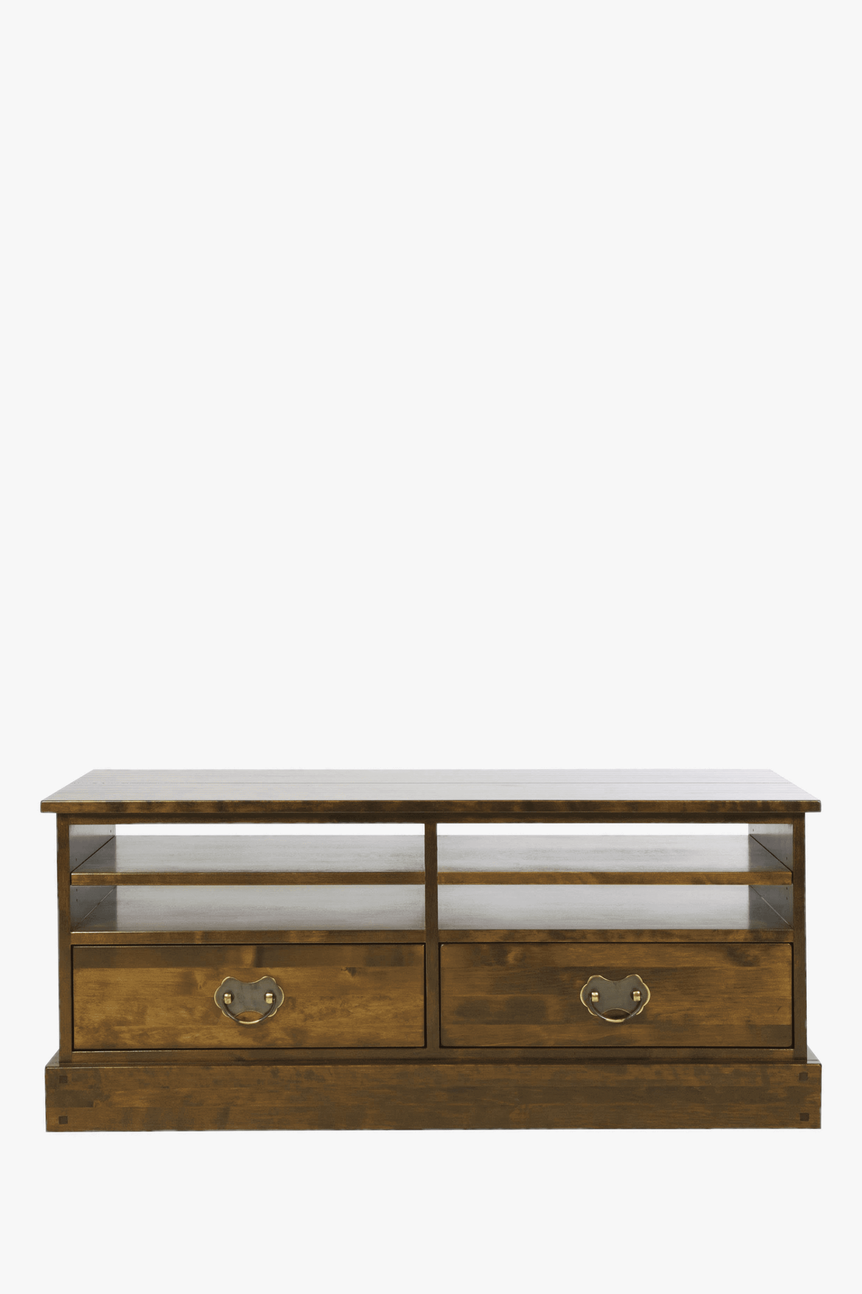 Crafted from predominantly solid birch but with some birch veneer modern materials the Laura Ashley Garrat 2 Drawer TV Unit works perfectly in any sitting room. It benefits from two deep drawers as well as an open back to the shelved section above allowing for the easy management of cables. The unit has a rippled top and is stained to help enhance the natural wood effects giving it a truly authentic and warm look.