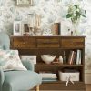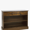 Crafted from predominantly solid birch but with some birch veneer modern materials the Laura Ashley Garrat 4 Drawer Console Table is a useful addition to suit any decor. It benefits from four drawers; two small and two large and in the open section below there is a fixed shelf. It has a rippled top and is stained to help enhance the natural wood effects and has brass effect fittings giving it a truly authentic look.