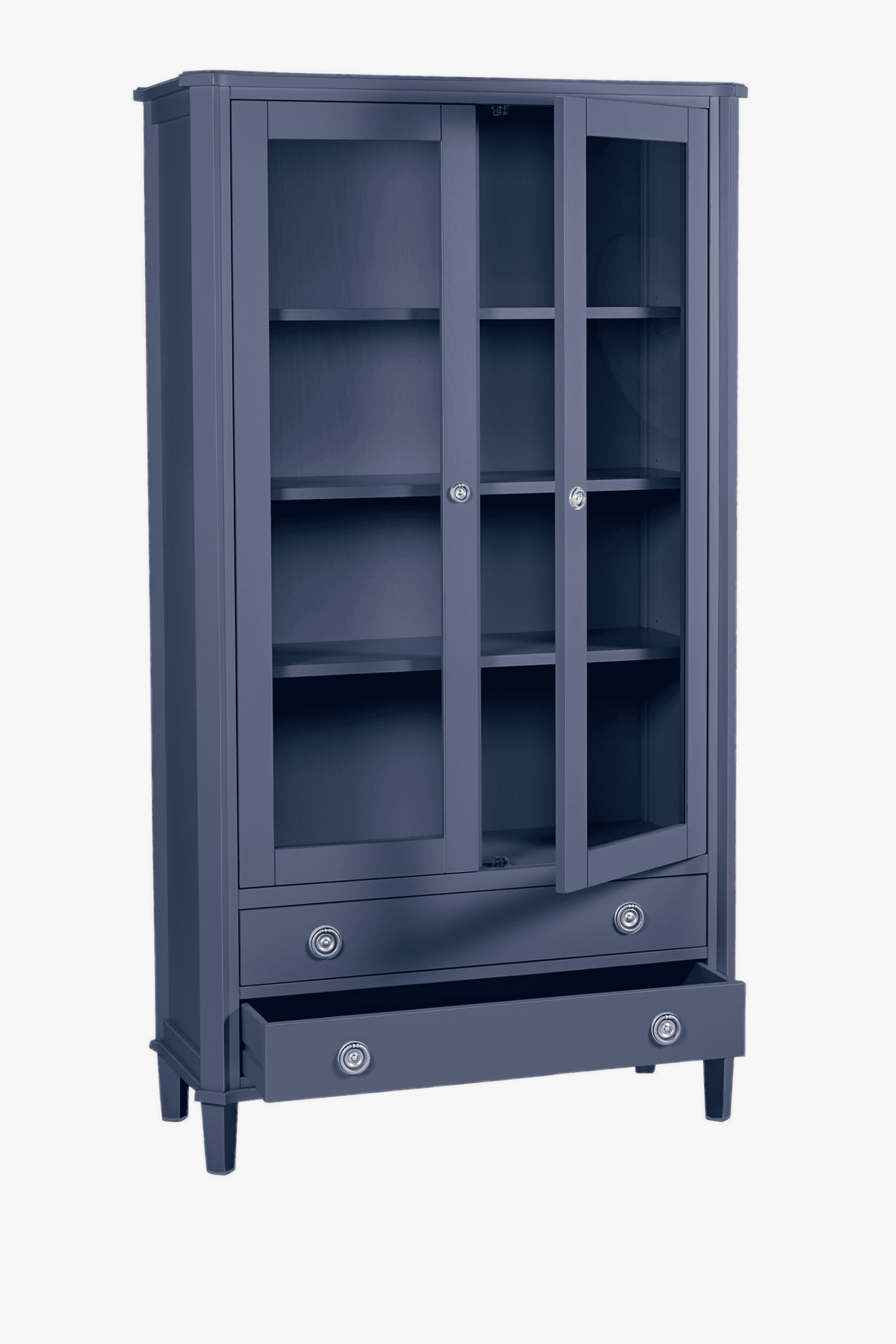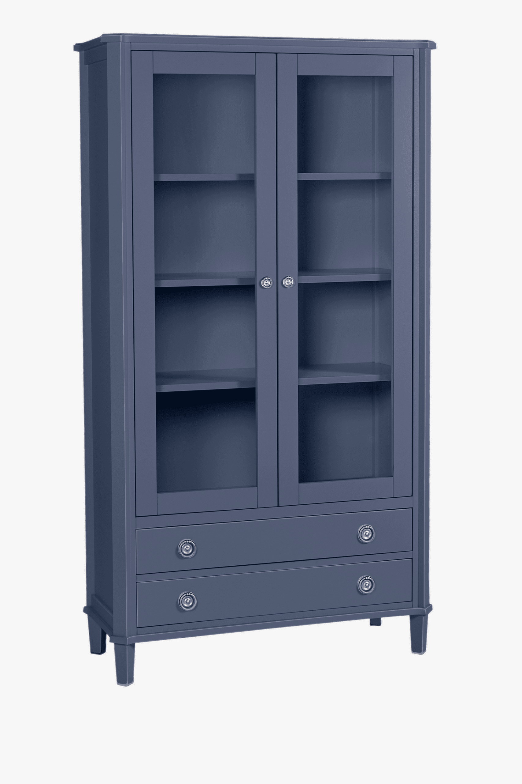 Cleverly combining display and storage the Laura Ashley Henshaw 2 Door 2 Drawer Display Cabinet works perfectly in any room in the home. With a pair of glass fronted doors and three adjustable shelves behind them there is ample display space for all those treasured objects. Beneath are two full width drawers offering yet more handy storage. It is crafted from solid wood with some modern materials and is hand painted and finished with a clear lacquer making it low maintenance. Only the legs need to be attached to begin enjoying this piece; full assembly is not required. Glass fronted doors.