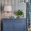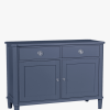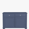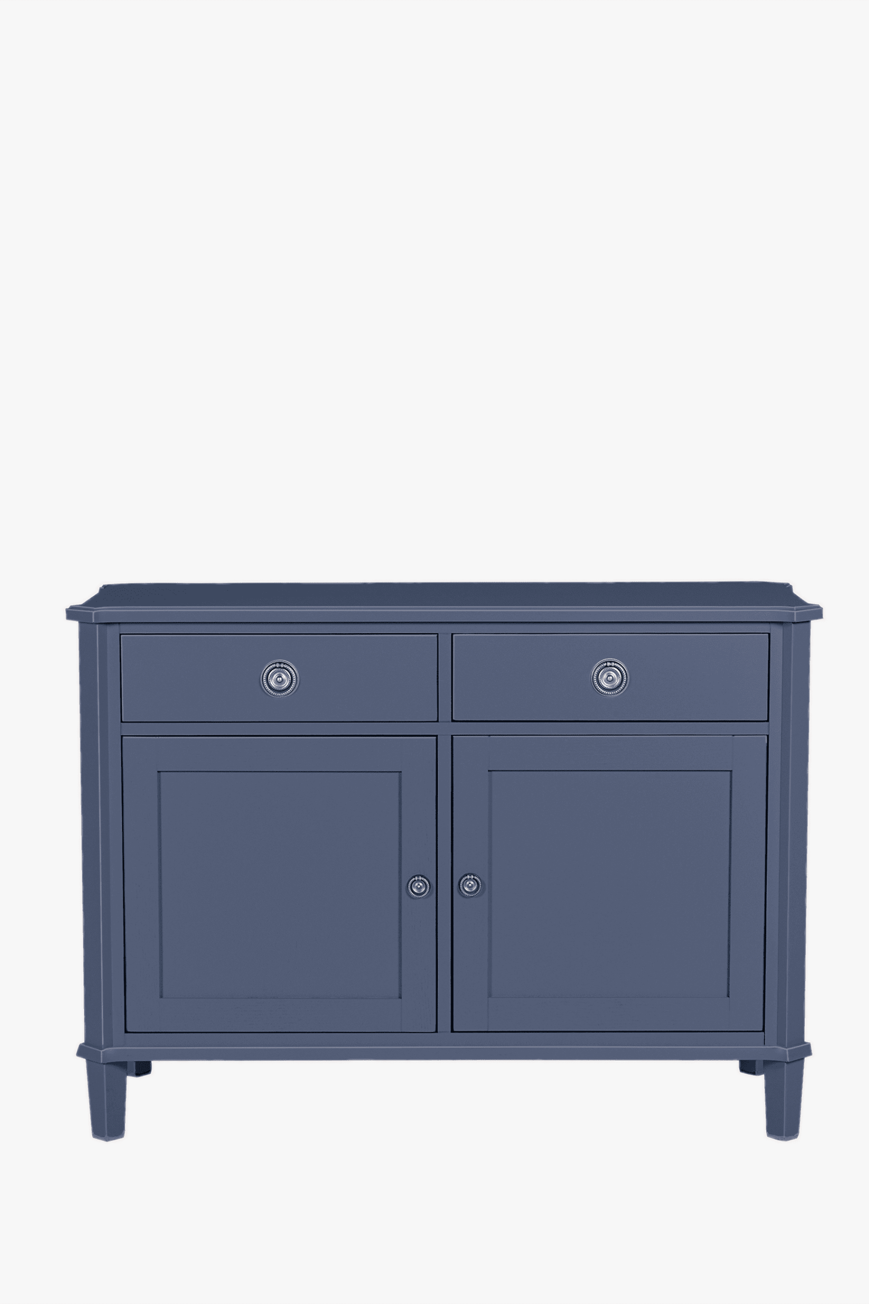 The imposing Laura Ashley Henshaw 2 Door 2 Drawer Sideboard would add sophistication to any décor. It features two good-sized drawers and two cupboard sections each fitted with an adjustable shelf for convenience. It is crafted from solid wood with veneered elements and modern materials and is hand painted. A clear lacquered finish provides for low maintenance and completing the appearance is subtle distressing to the edges giving the unit an aged effect. Only the legs need to be attached to begin enjoying this piece; full assembly is not required.