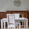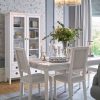 Adding a touch of drama to any dining area The Laura Ashley Henshaw Extending Dining Table is a generously sized table capable of seating 6-8 people with a loose extension leaf which stores within. It is crafted from solid wood with some modern materials, it is hand painted and finished with a clear lacquer making it low maintenance. Thanks to subtle distressing on its edges the table displays a gently aged effect so completing its appeal. Only the legs need to be attached to begin enjoying this piece; full assembly is not required.