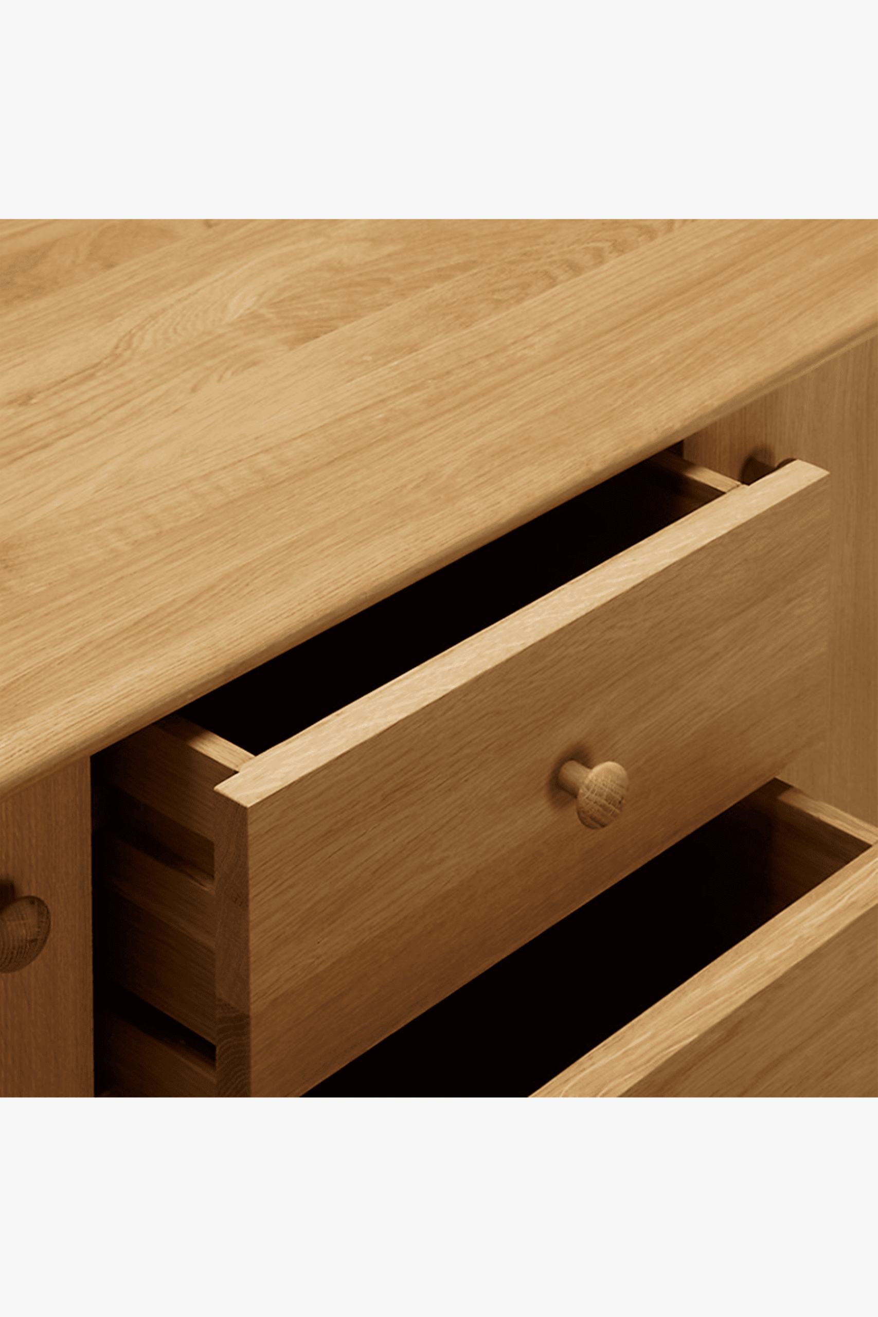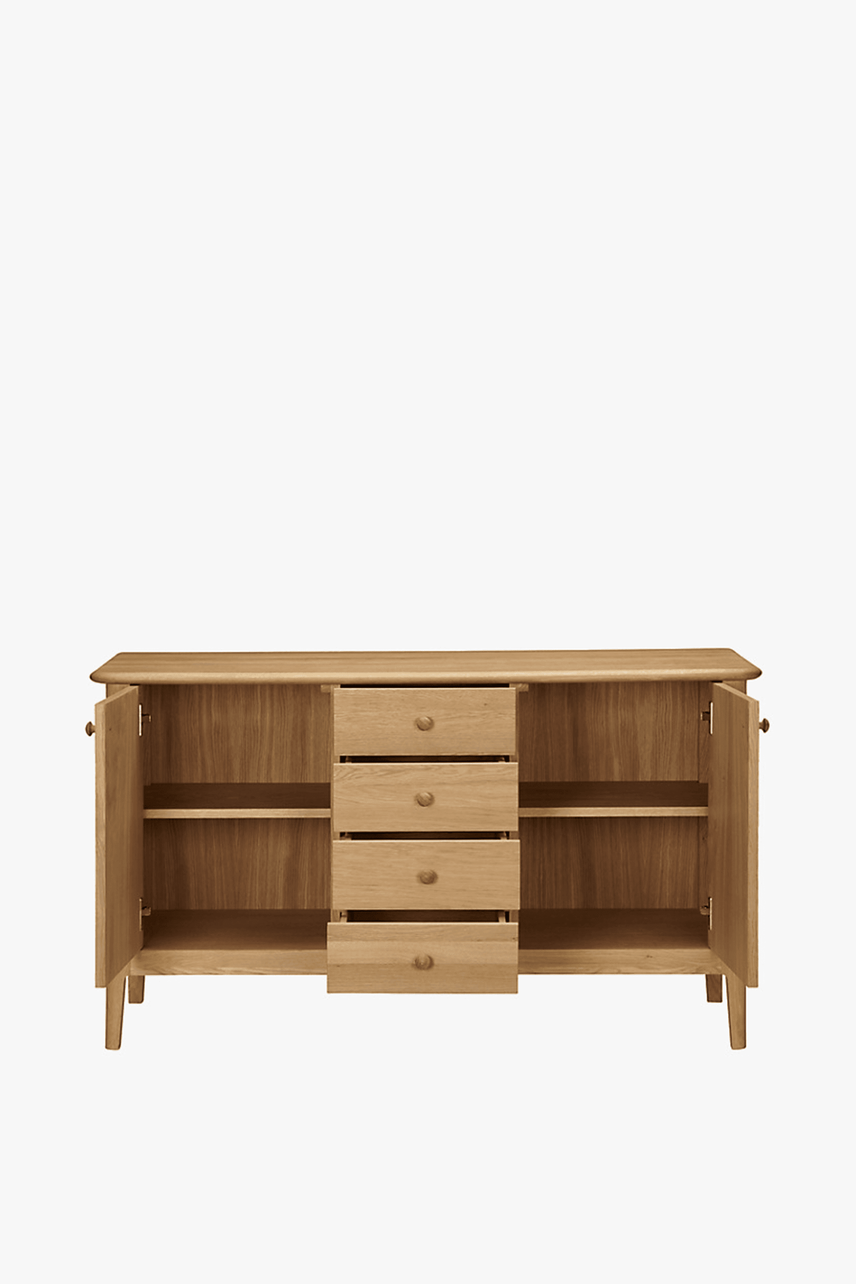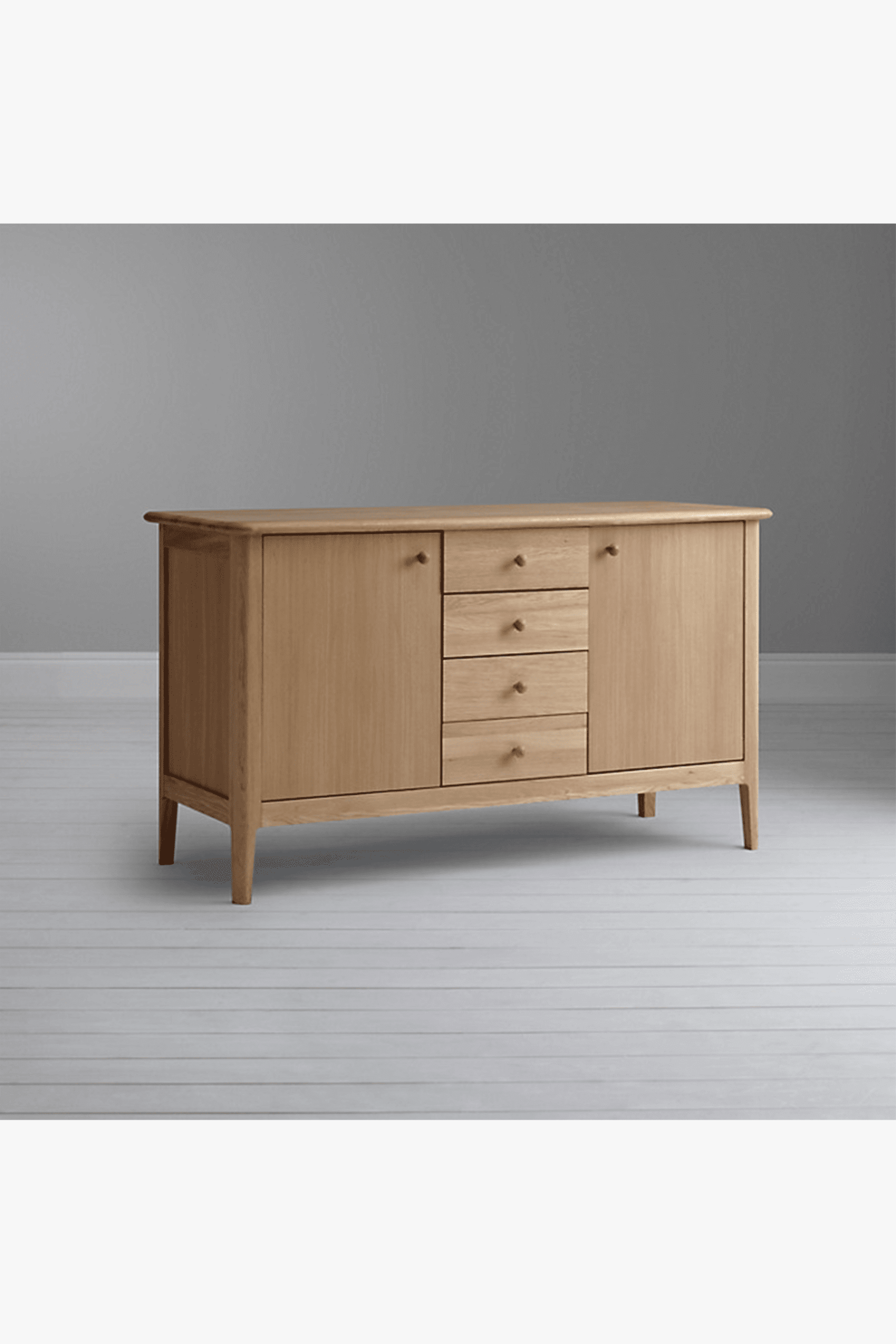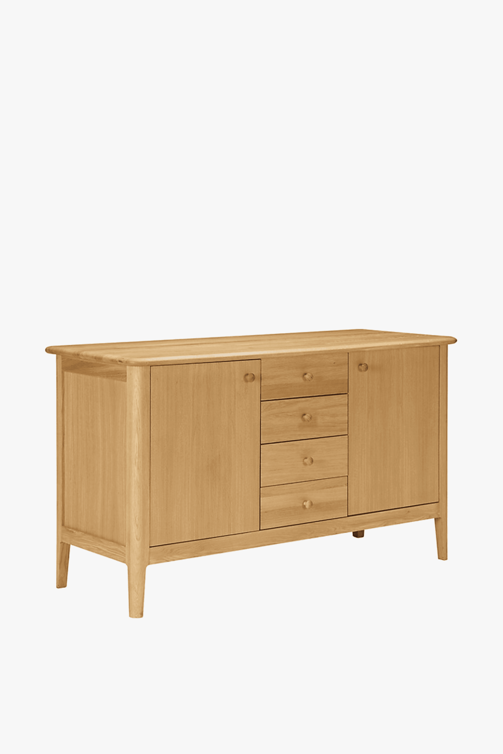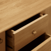 Hudson is made from solid European oak and oak veneer. With a blonde oil finish, its timeless, natural look is sure to suit most interior decors. This generously proportioned sideboard features four drawers with two large cupboard doors at either side. Within, you’ll find two adjustable shelves with a depth of 40.6cm, offering a wealth of convenient storage space. Its timeless, natural look is sure to suit most interior decors. Available in A grade only.