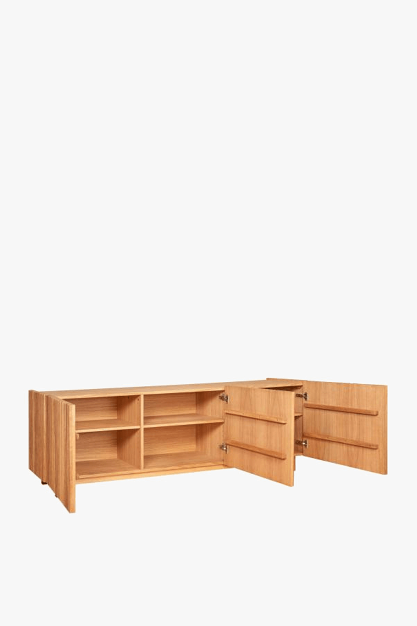 The Kargo collection designed by Habitat Design Studio is a complete line of storage furniture in oiled oak. Its industrial look combined with the timeless elegance of the oak give it a revamped “container” look. The thin vertical spats and the smooth lacquered boards create an interesting contrast. The collection incorporates minimalist and contemporary lines.