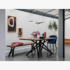 Features straight standard edge for table top and anthracite black powder coated metal base. Cutting edge finishes in oiled and lacquered compositions help to offer durability and pleasing patina. Also available in North American black walnut upon request.