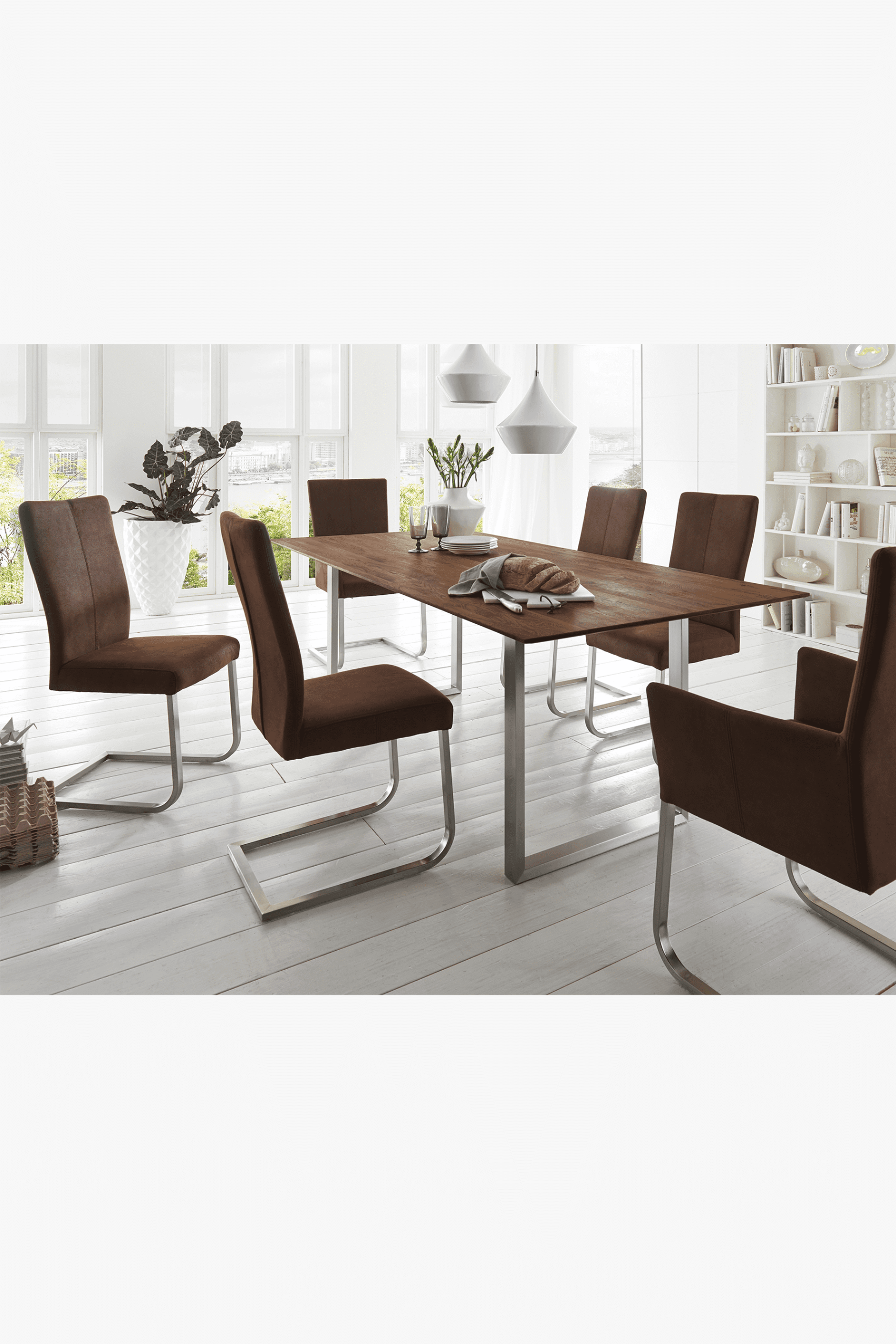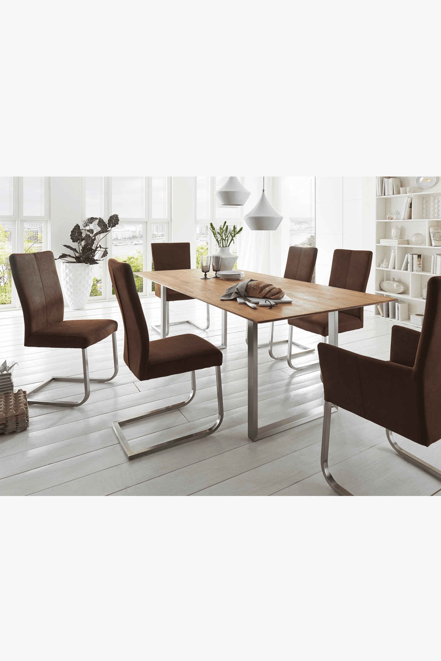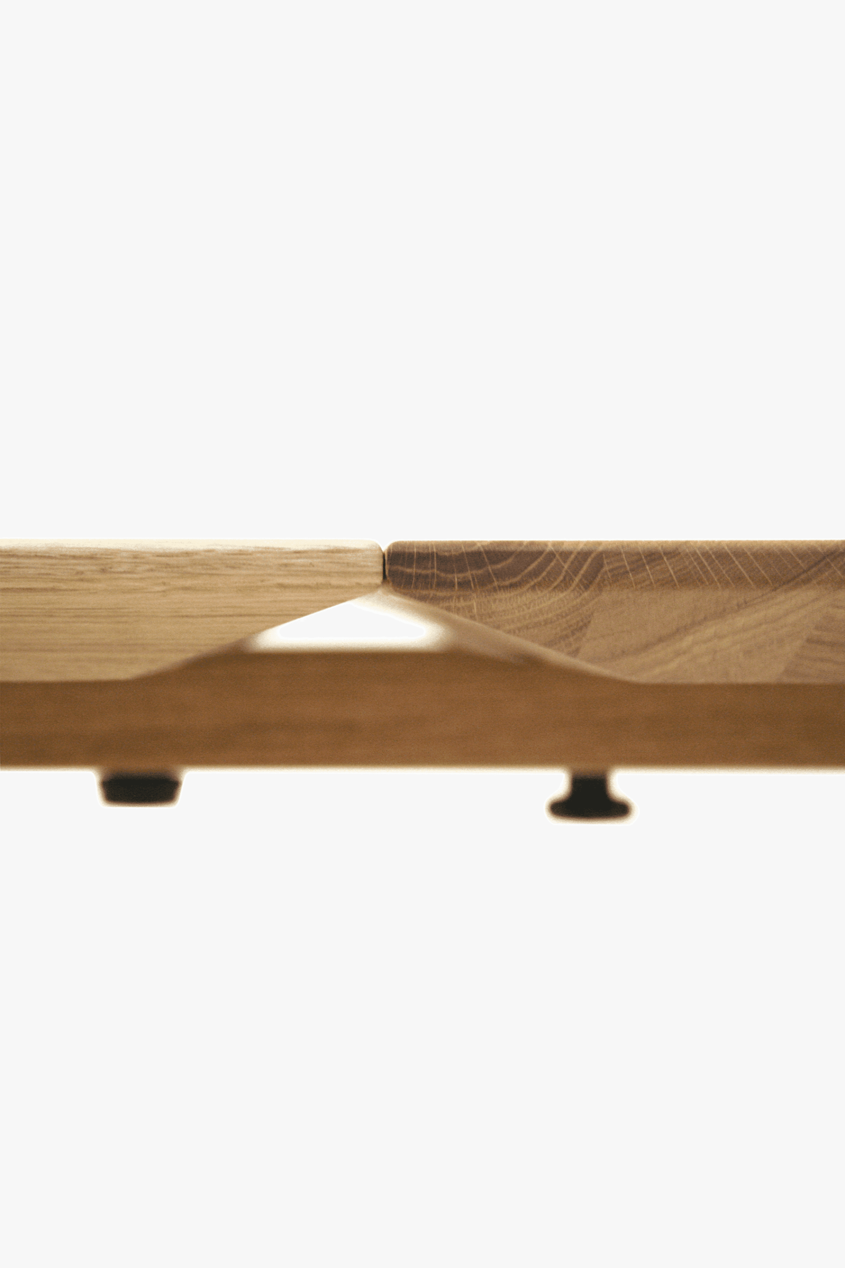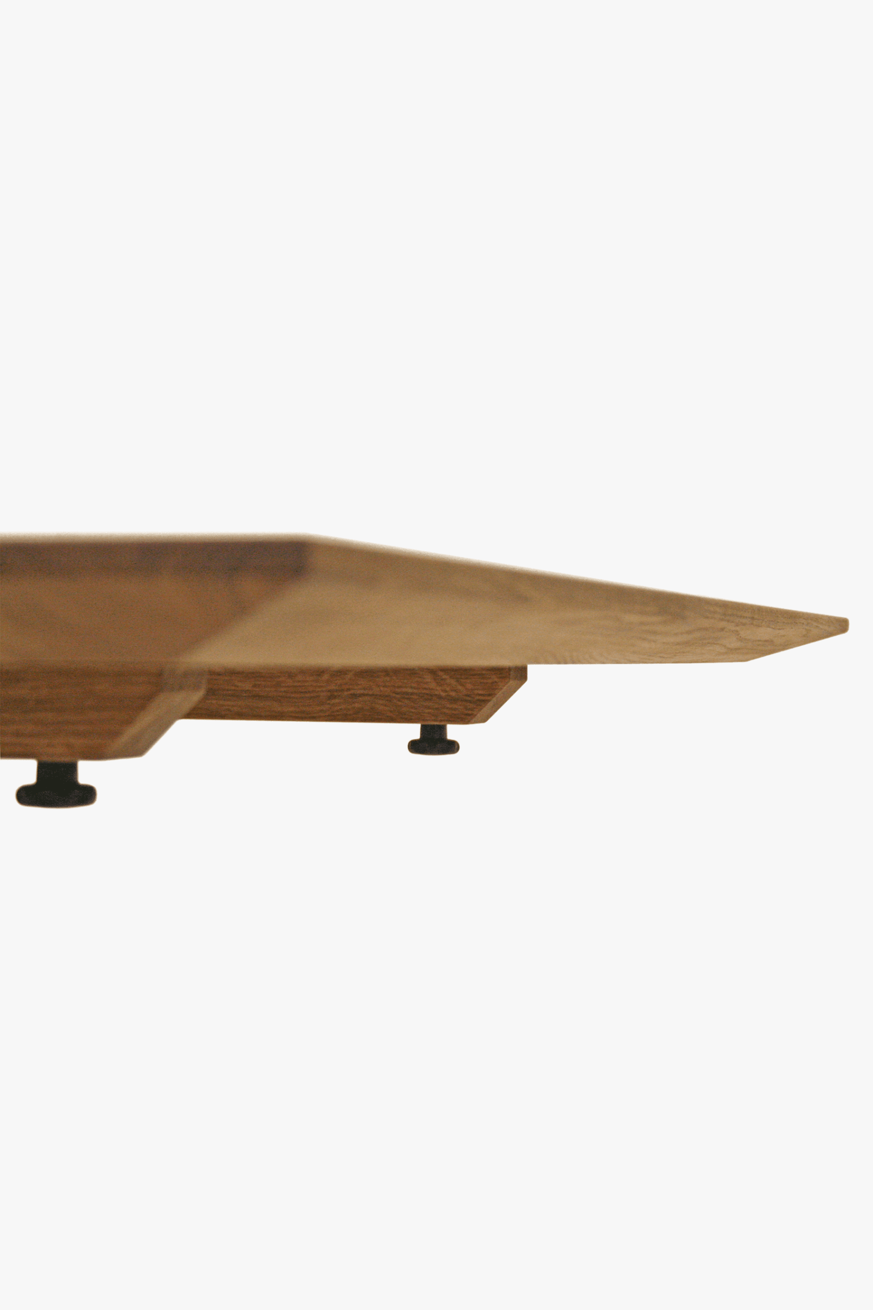 Table tops can be selected in either solid European oak or solid North American black walnut. Cutting edge finishes in oiled and lacquered compositions help to offer durability and pleasing patina. The table is available with a chamfered edge in an oiled or lacquered finish, which offers durability as well as pleasingly warm look. Table top thickness is 30mm.