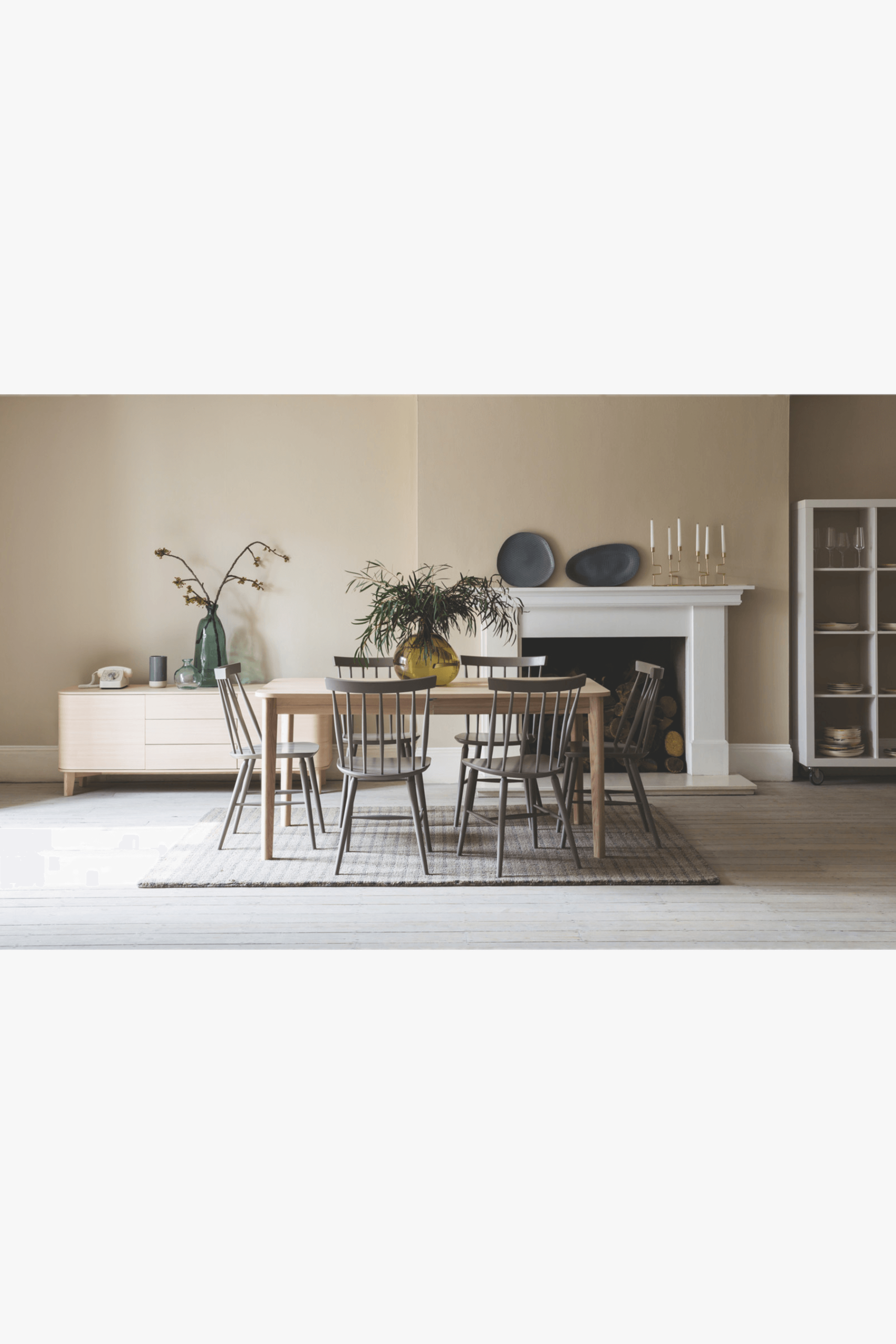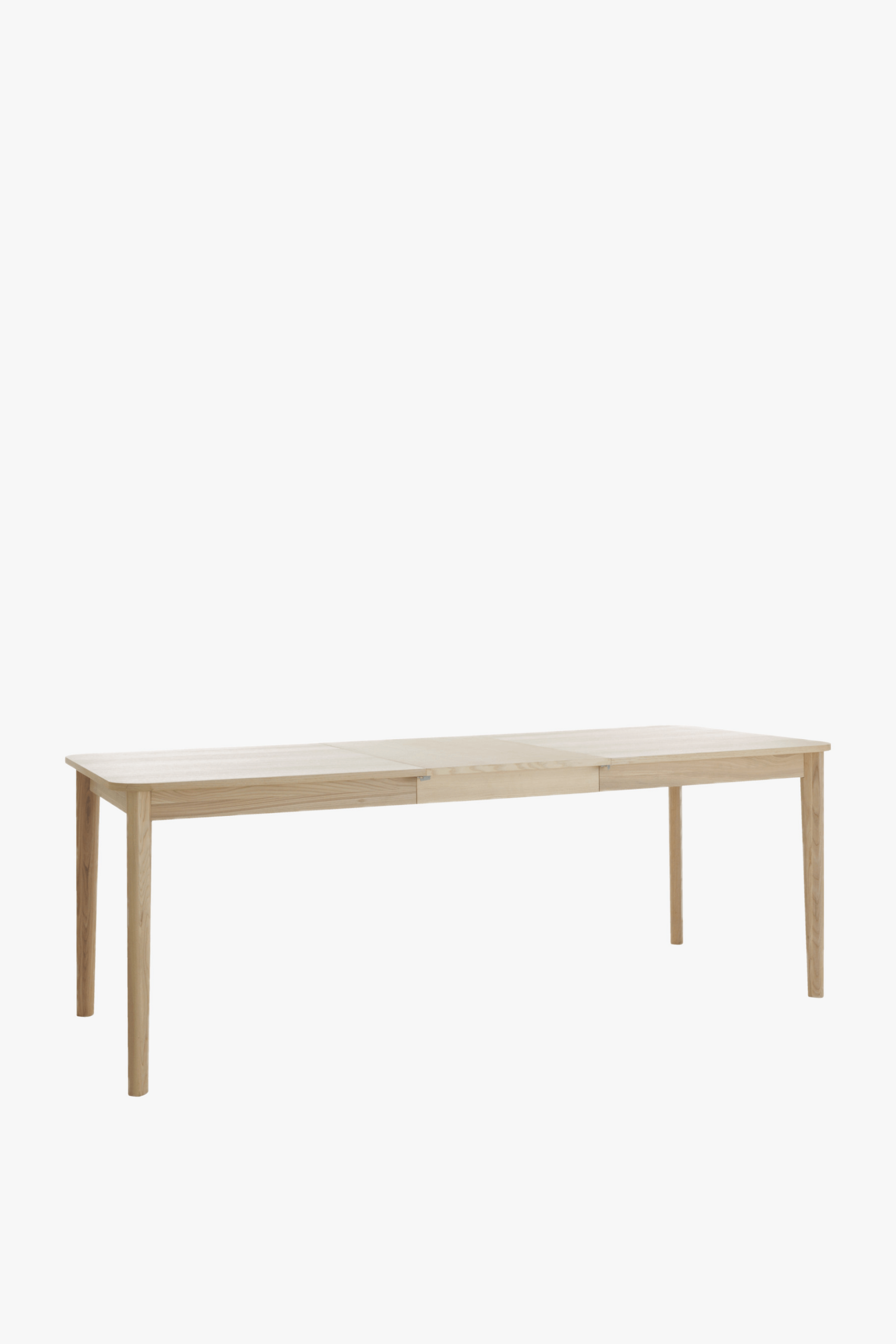 The beautiful Lumen ash extending dining table has pure, clean lines with a feature curved edge and fine grain. Part of the Lumen furniture range, made from solid ash and ash veneer and protected by matt lacquer, the table seats 6 when closed and 8 when extended.