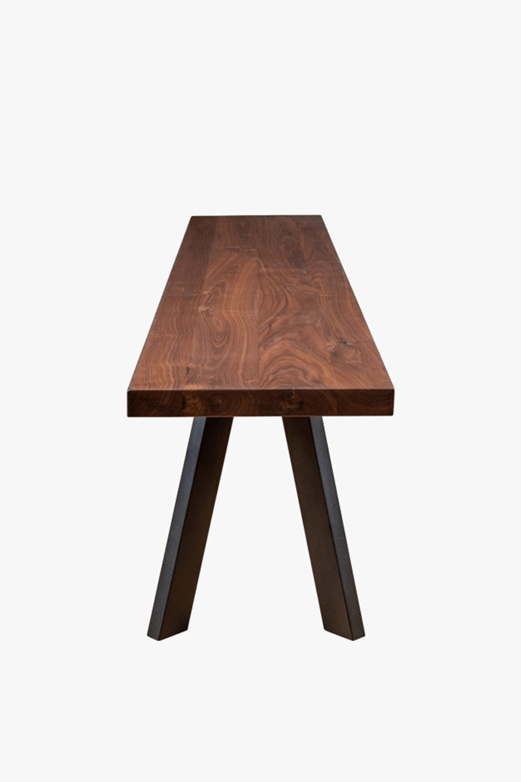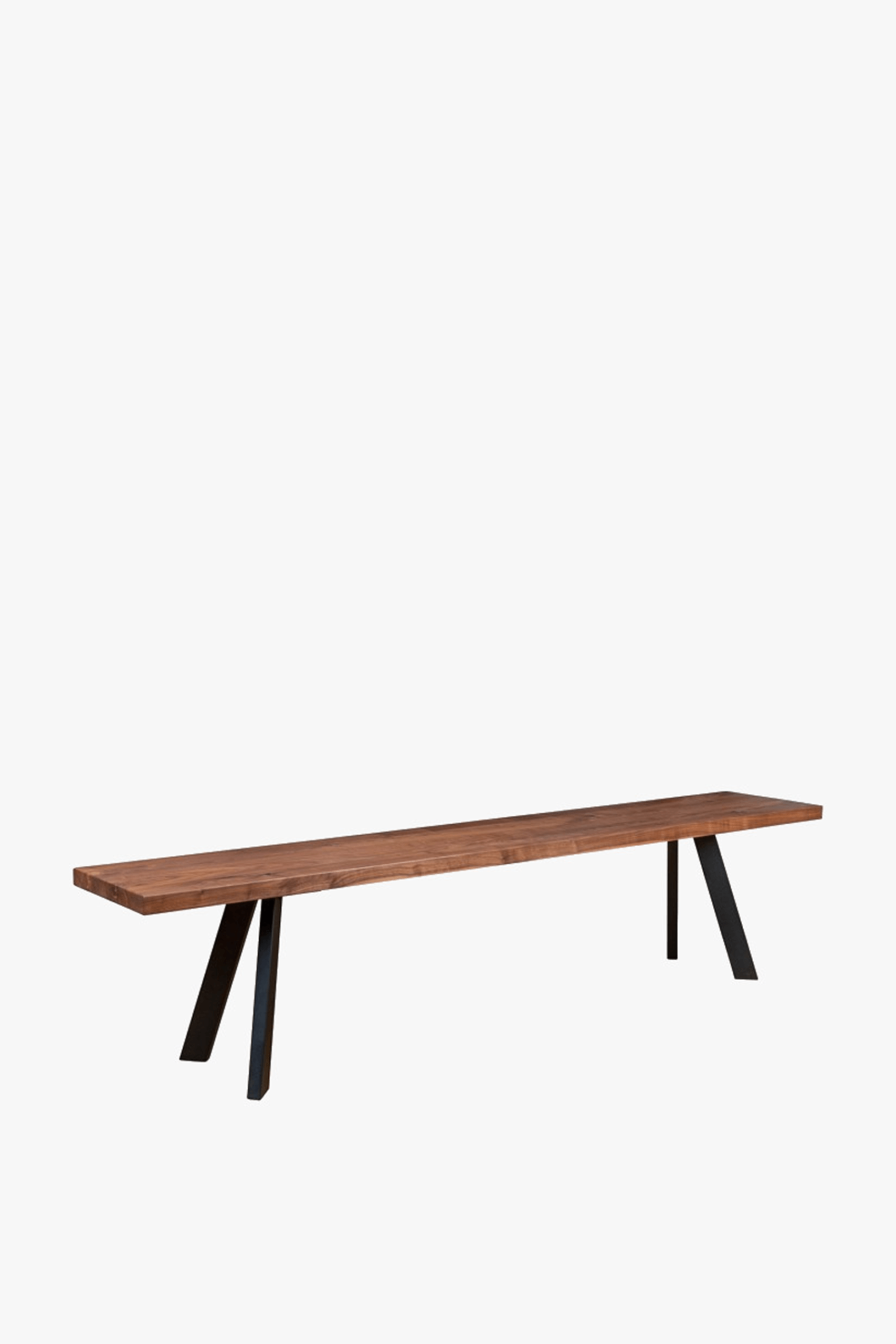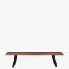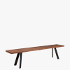 Heal’s Designed by You collection of dining tables and benches allows you to create the perfect table for your space. Our tables are made of solid oak or walnut in an oiled finish and are available in five lengths, two widths, and six different wood finishes and three different edge profiles to create a table that is the perfect fit for your home. Grain, knots and cracks are a natural property of all solid wood and add beauty and interest. Each piece is unique and will have a different grain pattern and variances in shading and colour. This is the charm of solid wood and is a different look to veneers which are more uniform. The oiled finish will enable the table to last a lifetime with a little love & care. Our exclusive Madrid bench in solid wood with a splayed metal leg from our Designed by You range gives a sleek minimal look.