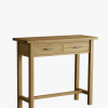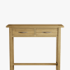 Slender in stature yet brilliantly practical the Laura Ashley Milton 2 Drawer Console Table features two equally sized and handy drawers. This striking table is crafted from a mix of solid oak and oak veneered elements and exudes a pure and timeless quality which is further enhanced by its fine, oiled finish. Additionally it features traditional jointing and the added charm of antiqued pewter effect handles. The top displays natural wood features, grain and colour variation which be further enhanced by periodically applying a little oil to maintain its lustre.