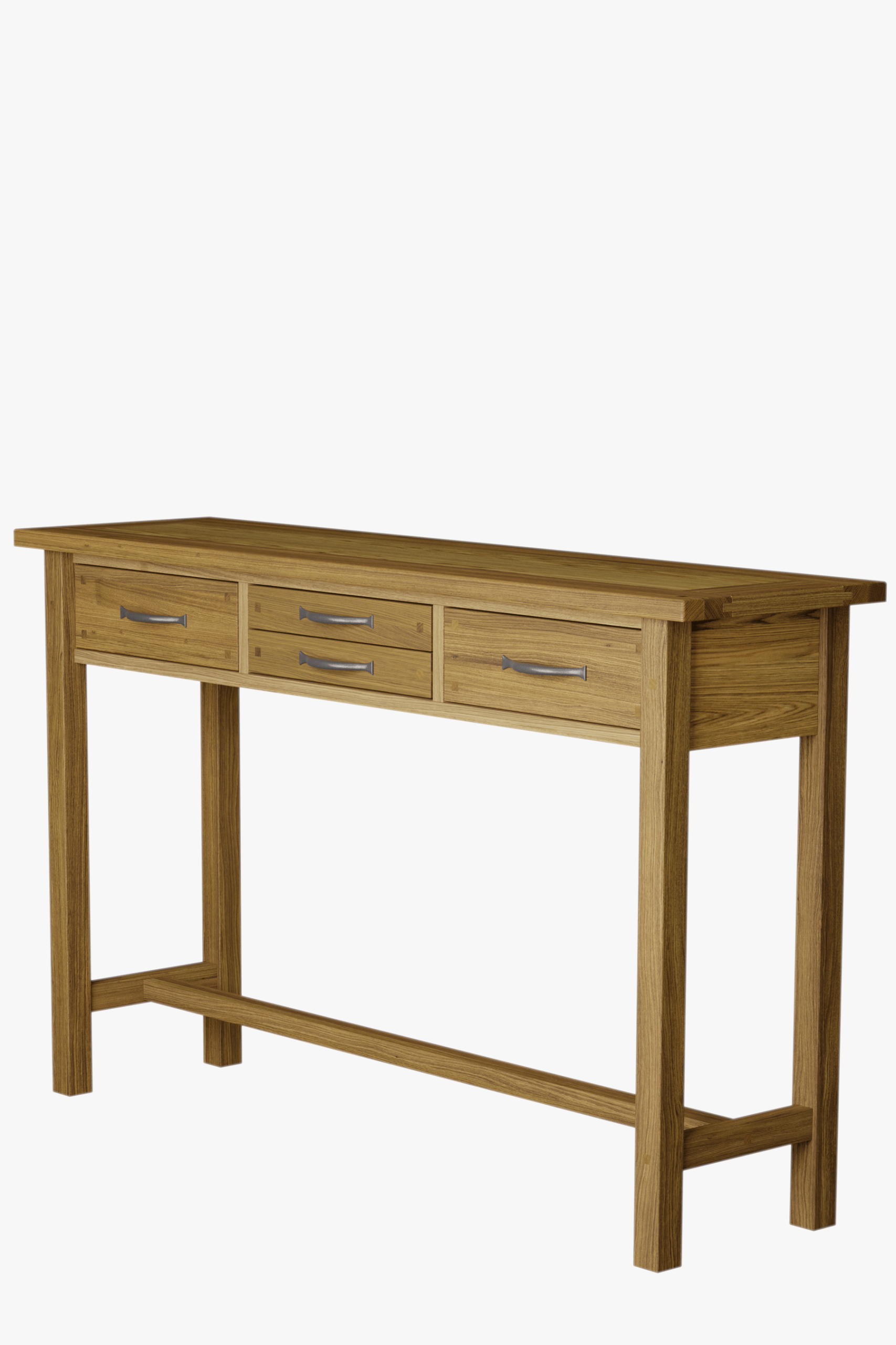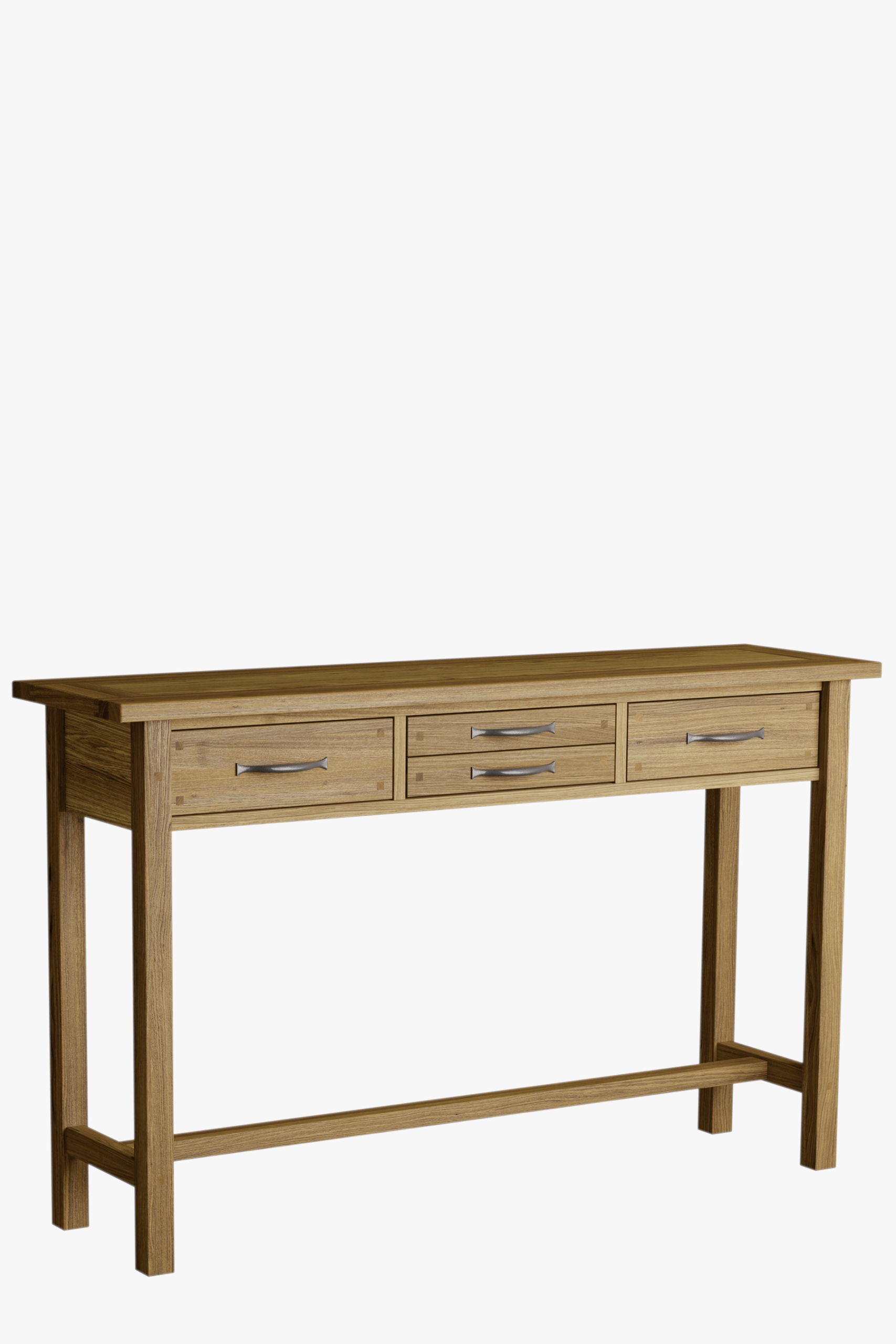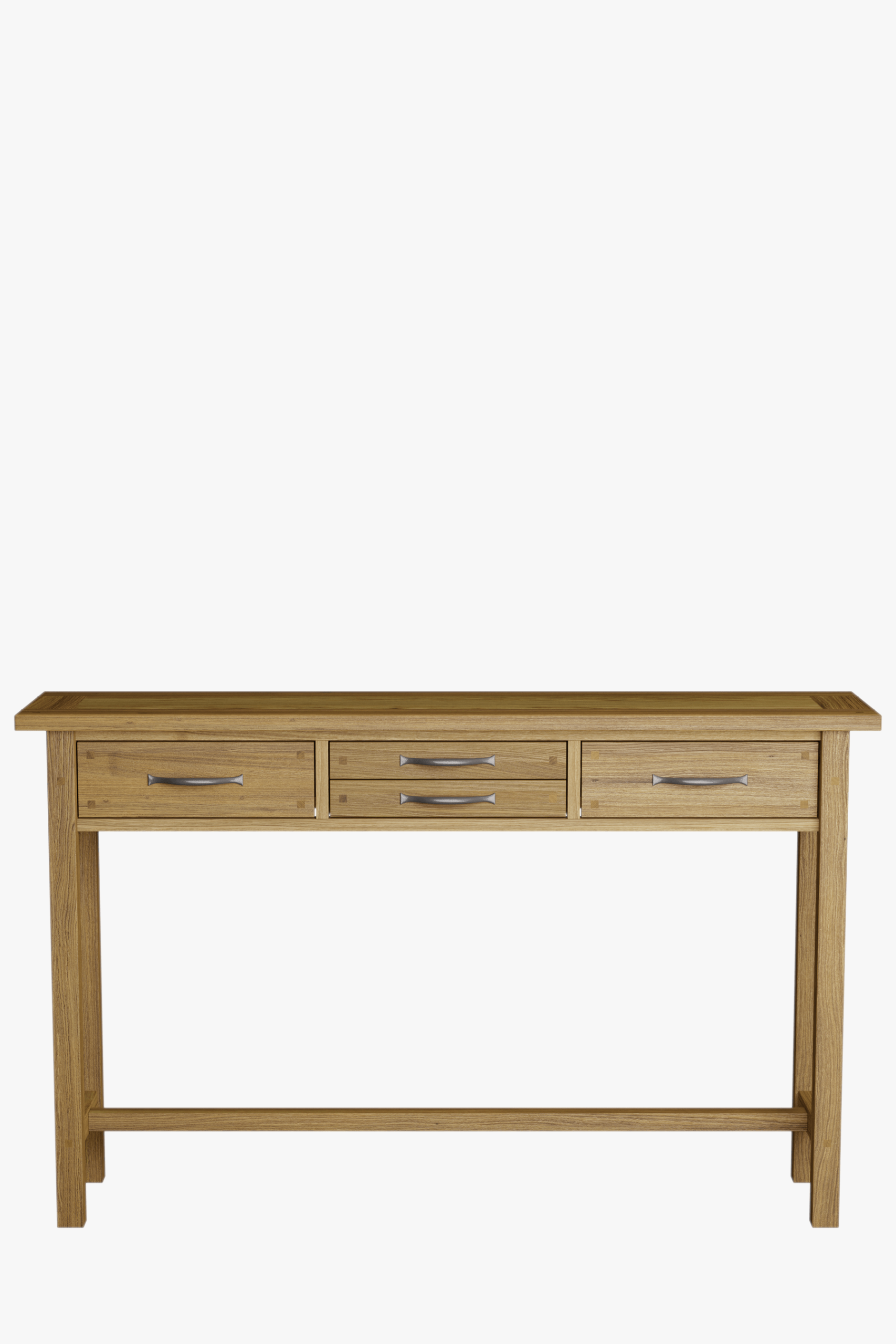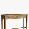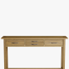 Slender in stature yet brilliantly practical the Laura Ashley Milton 4 Drawer Console Table features four handy drawers. This striking table is crafted from a mix of solid oak and oak veneered elements and exudes a pure and timeless quality which is further enhanced by its fine, oiled finish. Additionally it features traditional jointing and the added charm of antiqued pewter effect handles. The top displays natural wood features, grain and colour variation which be further enhanced by periodically applying a little oil to maintain its lustre.