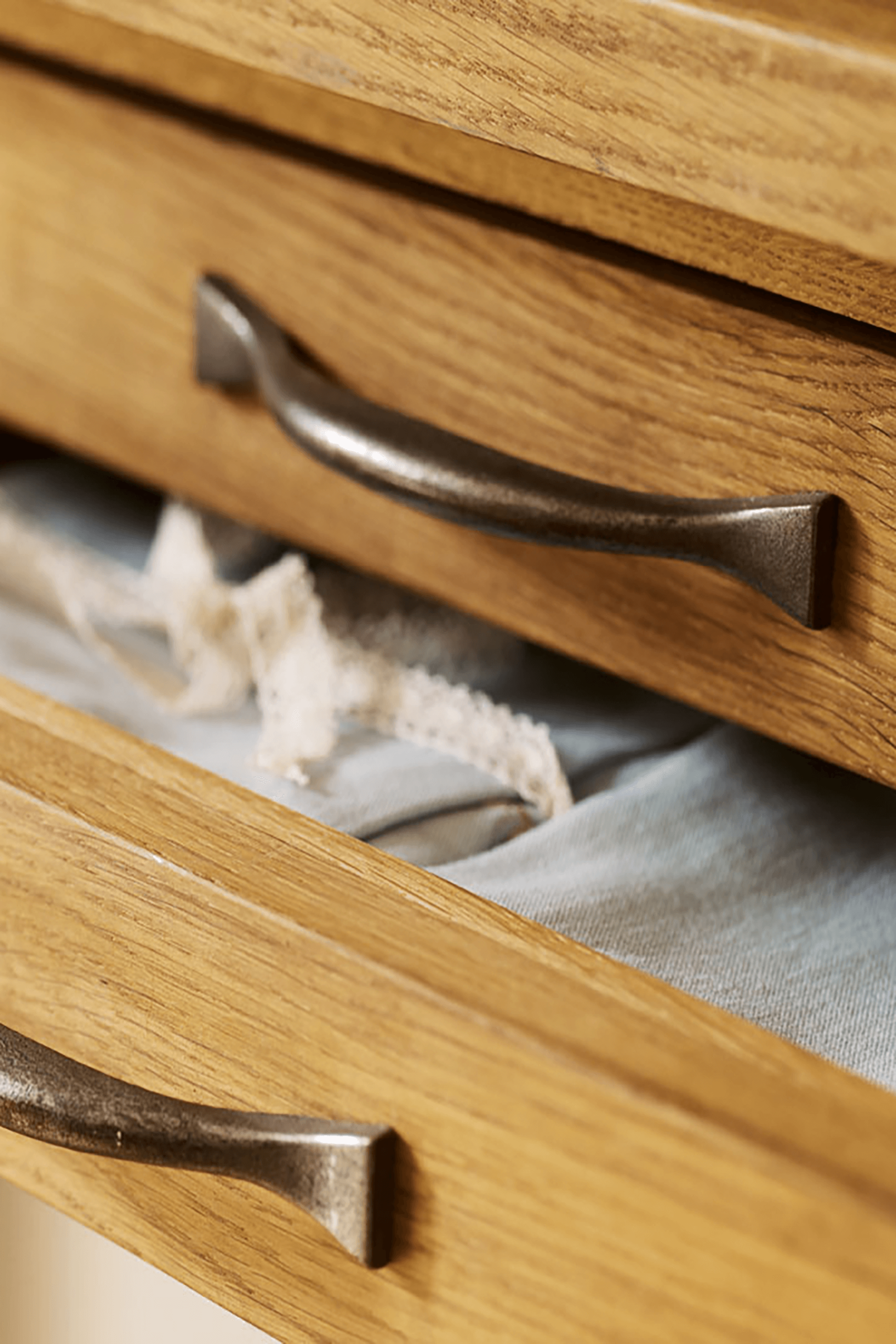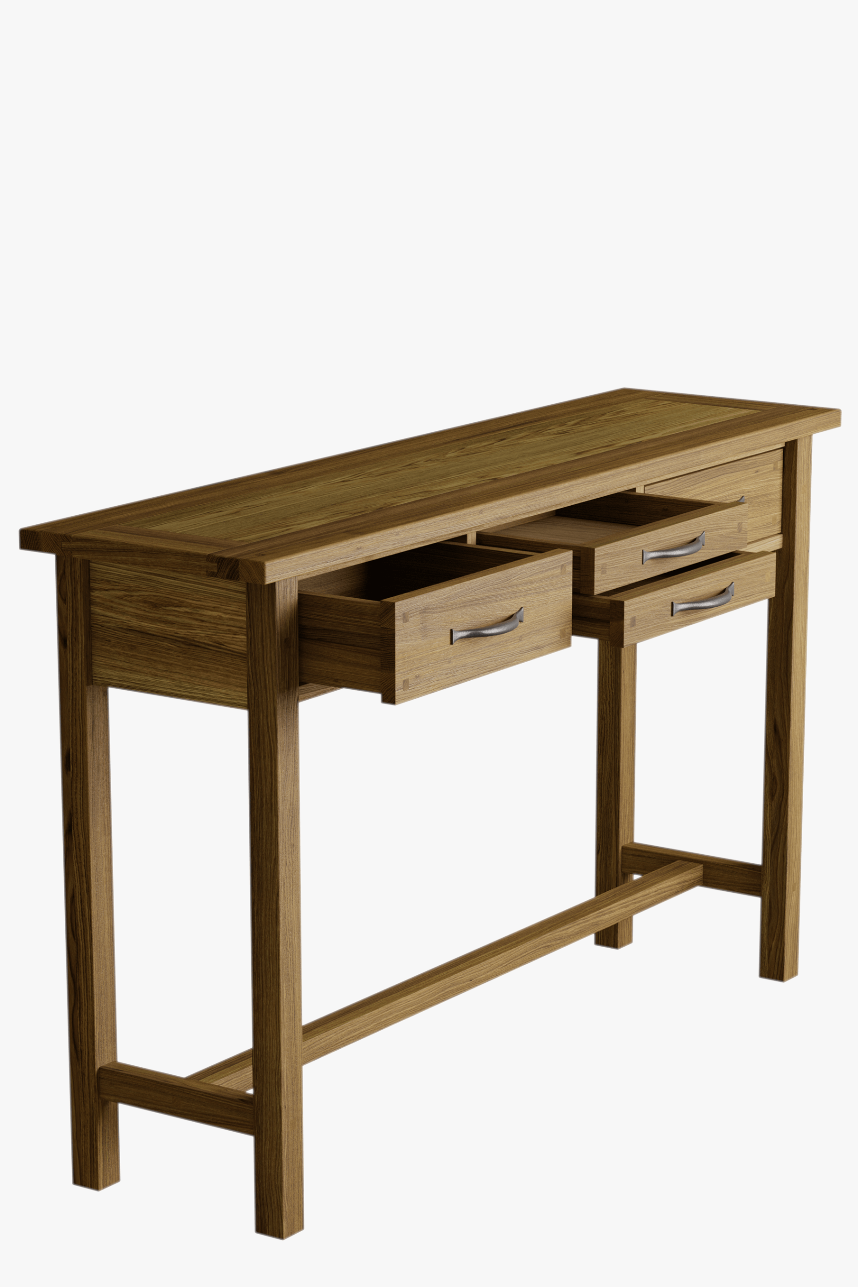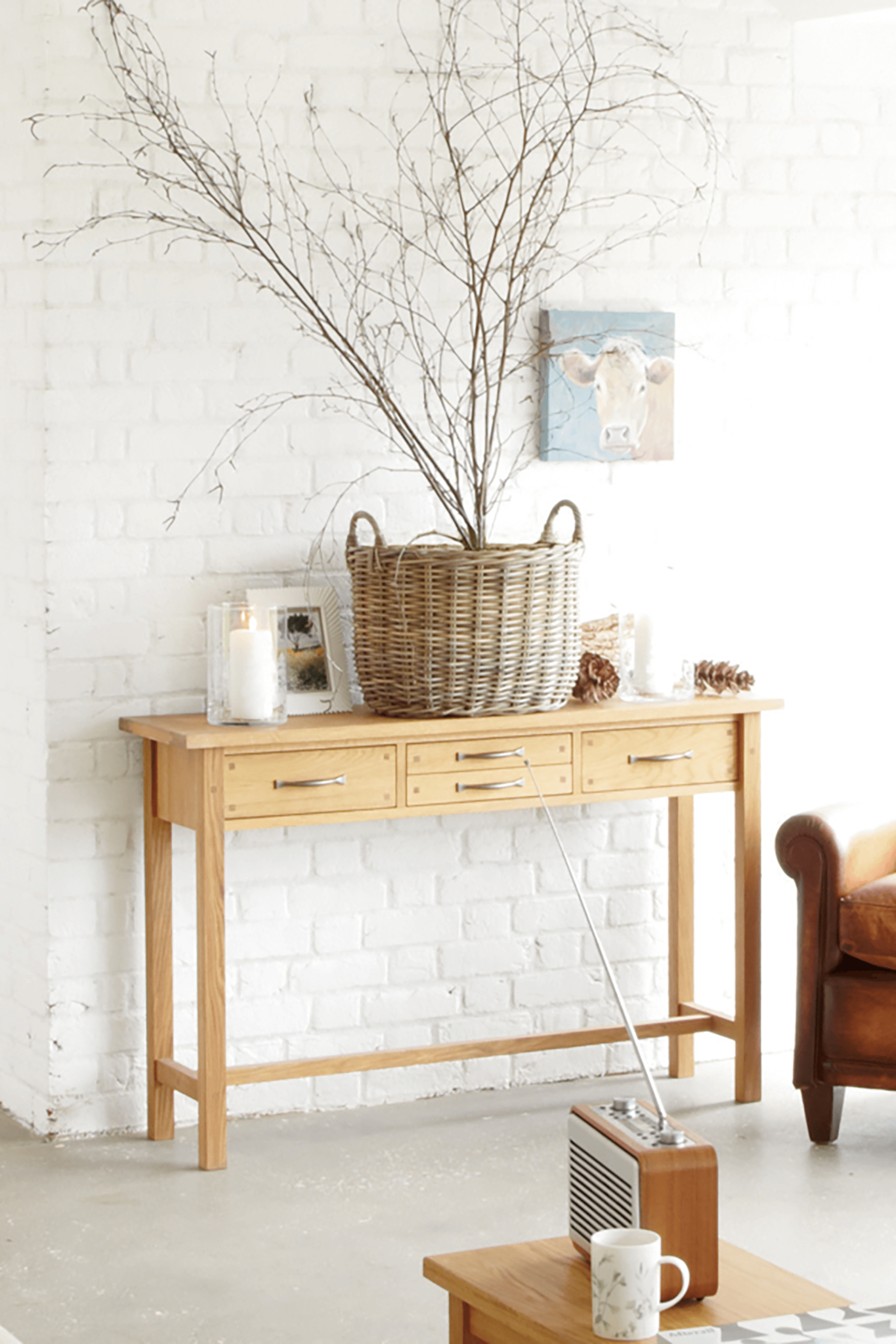 Slender in stature yet brilliantly practical the Laura Ashley Milton 4 Drawer Console Table features four handy drawers. This striking table is crafted from a mix of solid oak and oak veneered elements and exudes a pure and timeless quality which is further enhanced by its fine, oiled finish. Additionally it features traditional jointing and the added charm of antiqued pewter effect handles. The top displays natural wood features, grain and colour variation which be further enhanced by periodically applying a little oil to maintain its lustre.