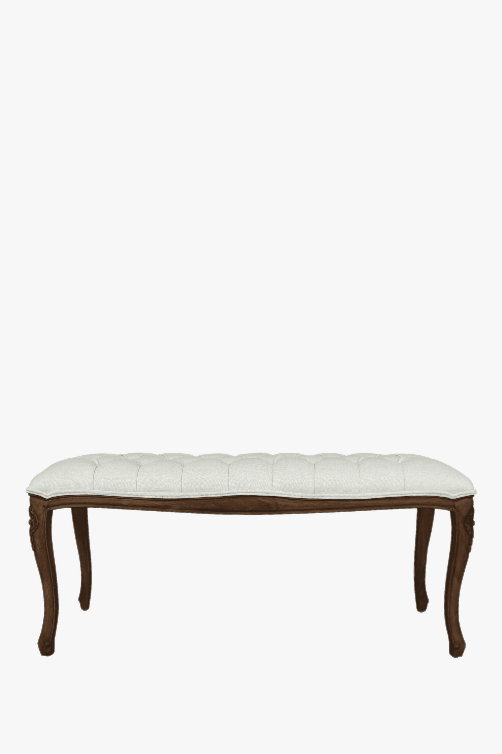 Inspired by elegant French styling the Laura Ashley Montpellier Upholstered Bench is a useful addition to any setting. This beautiful solid wood bench is offered in an aged walnut finish and features classic style detailing such as the cabriole legs and hand carved detailing. It boasts a deep buttoned upholstered foam top in a plain weave neutral coloured fabric that perfectly complements its frame.