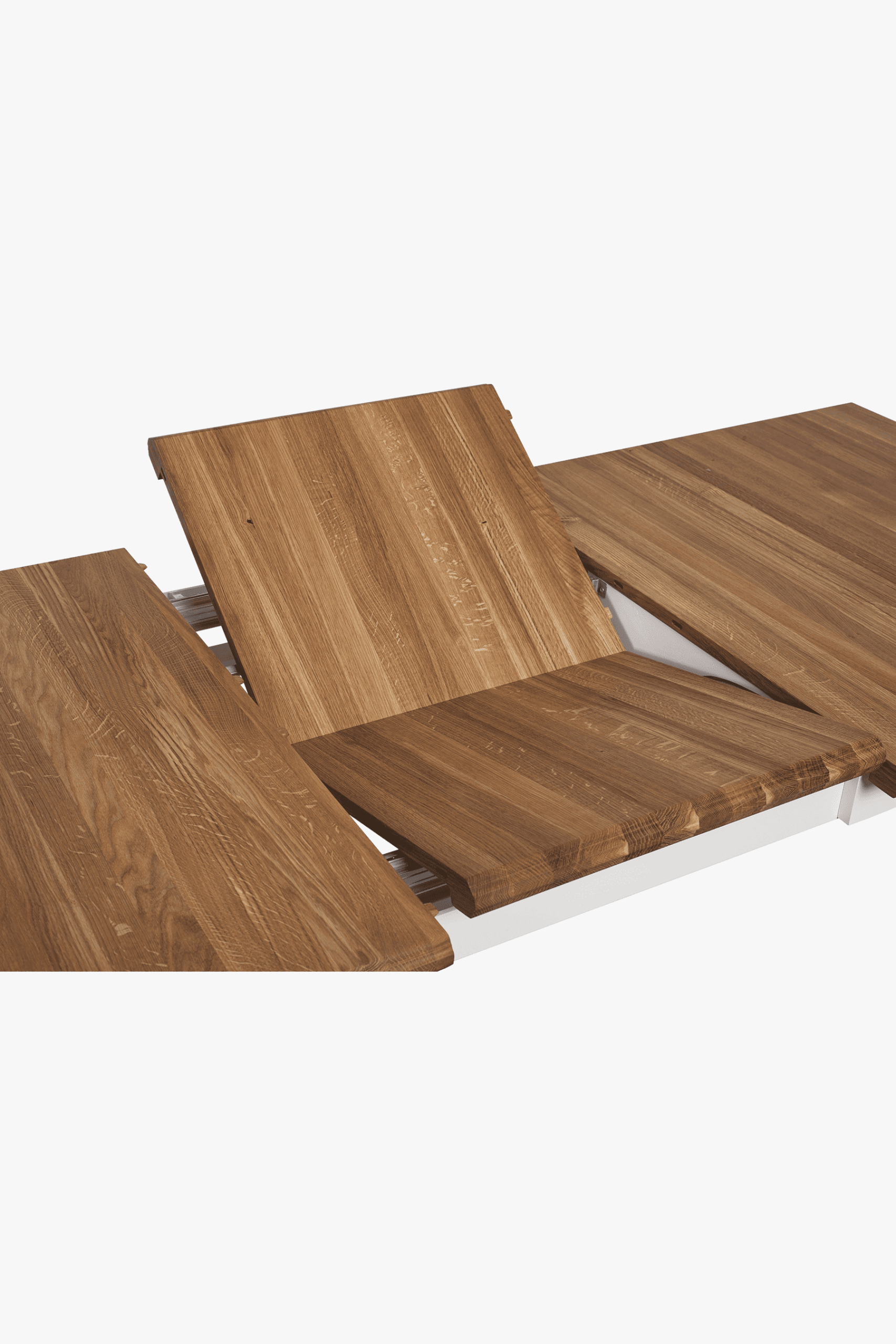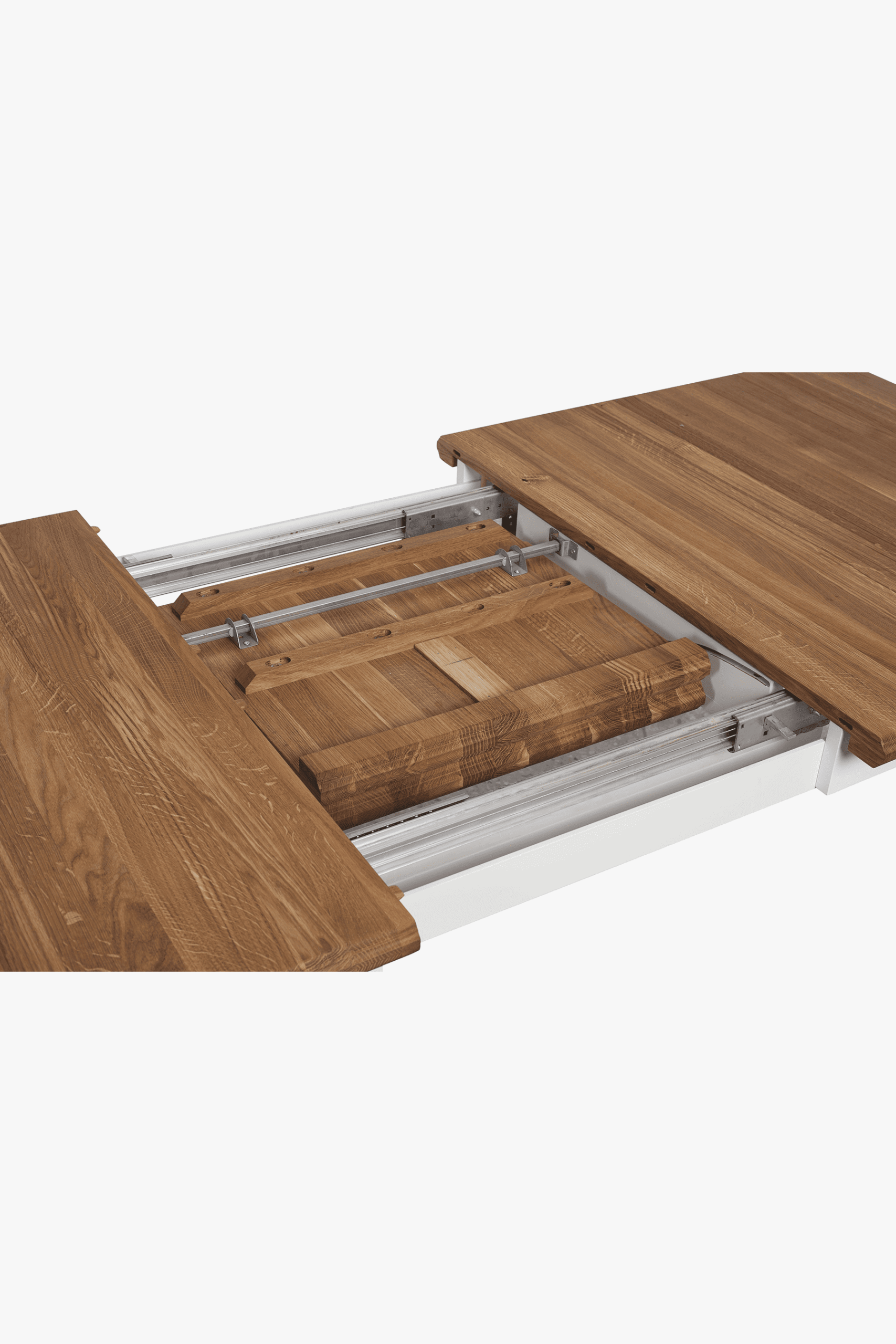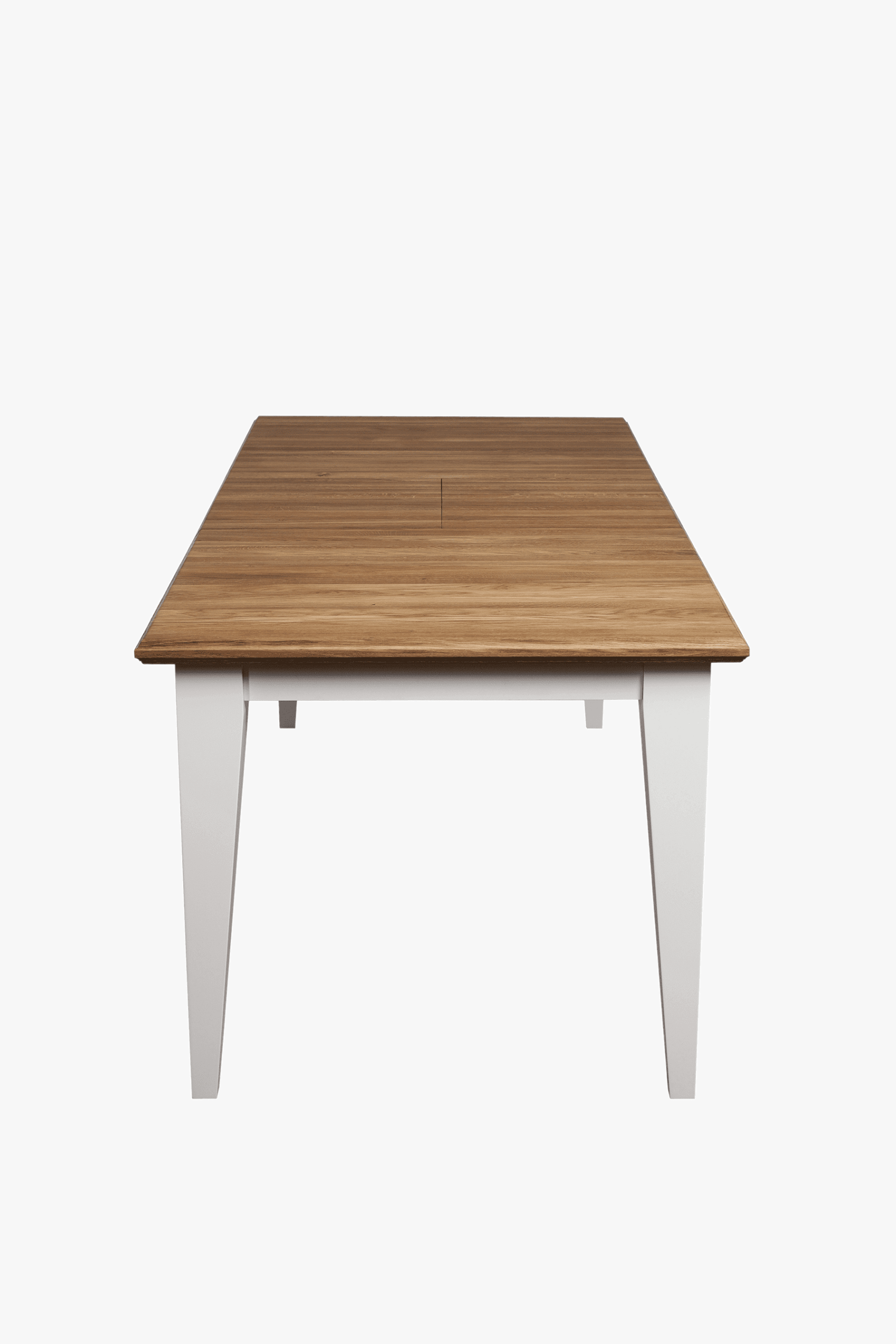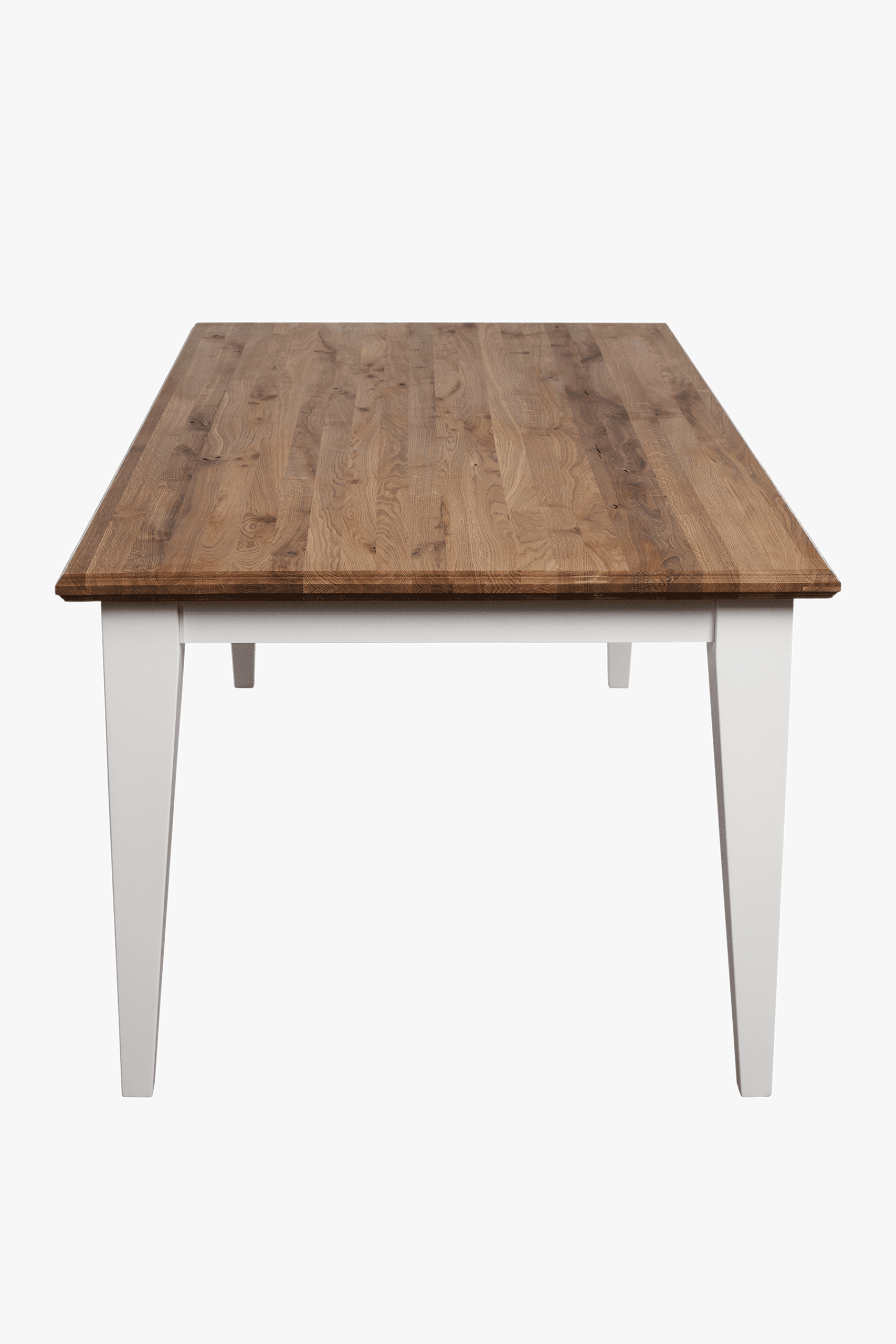 Made of solid oak and MDF With oiled top and white painted base Different finishes are available