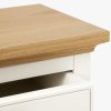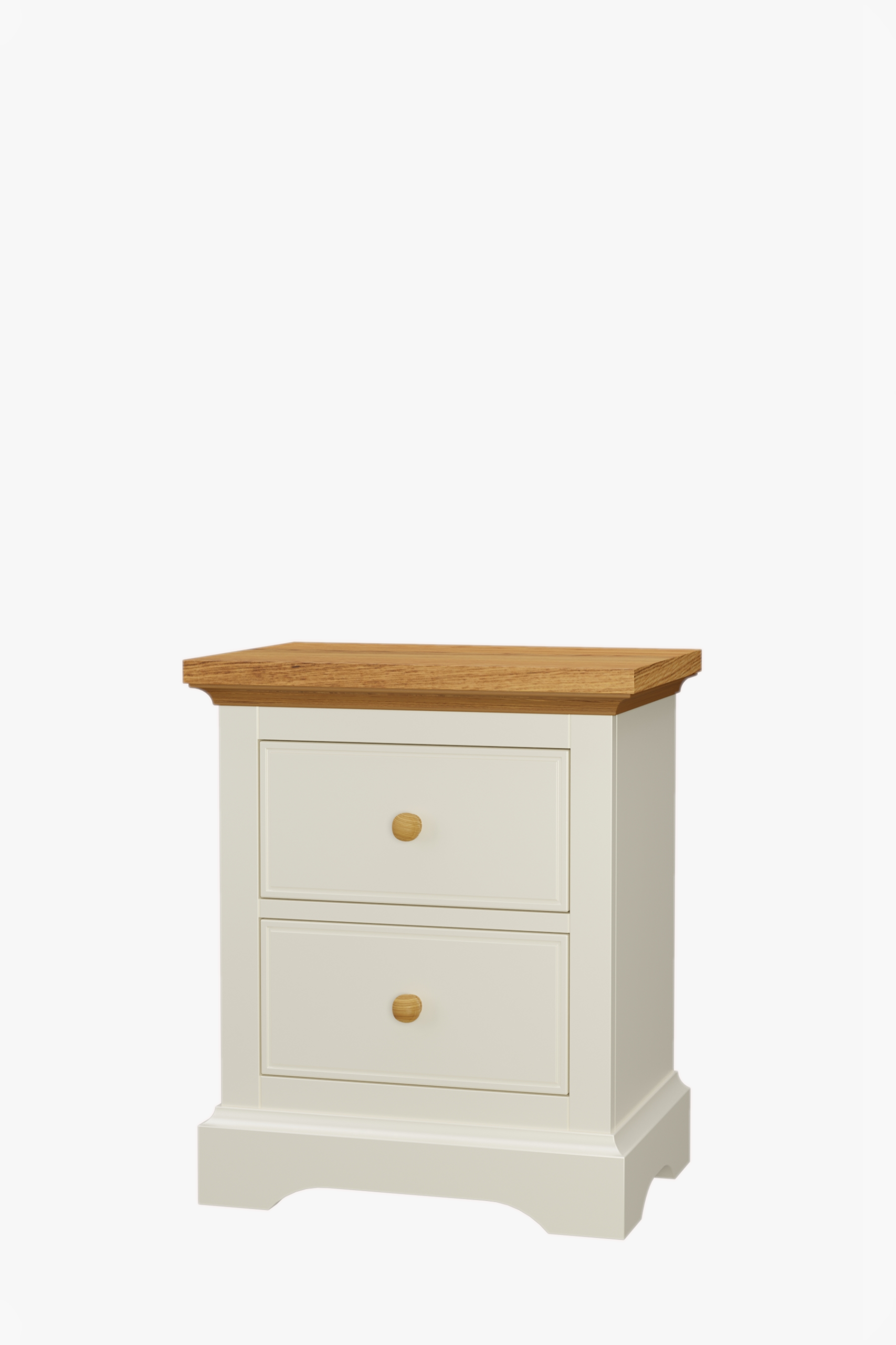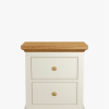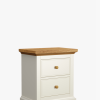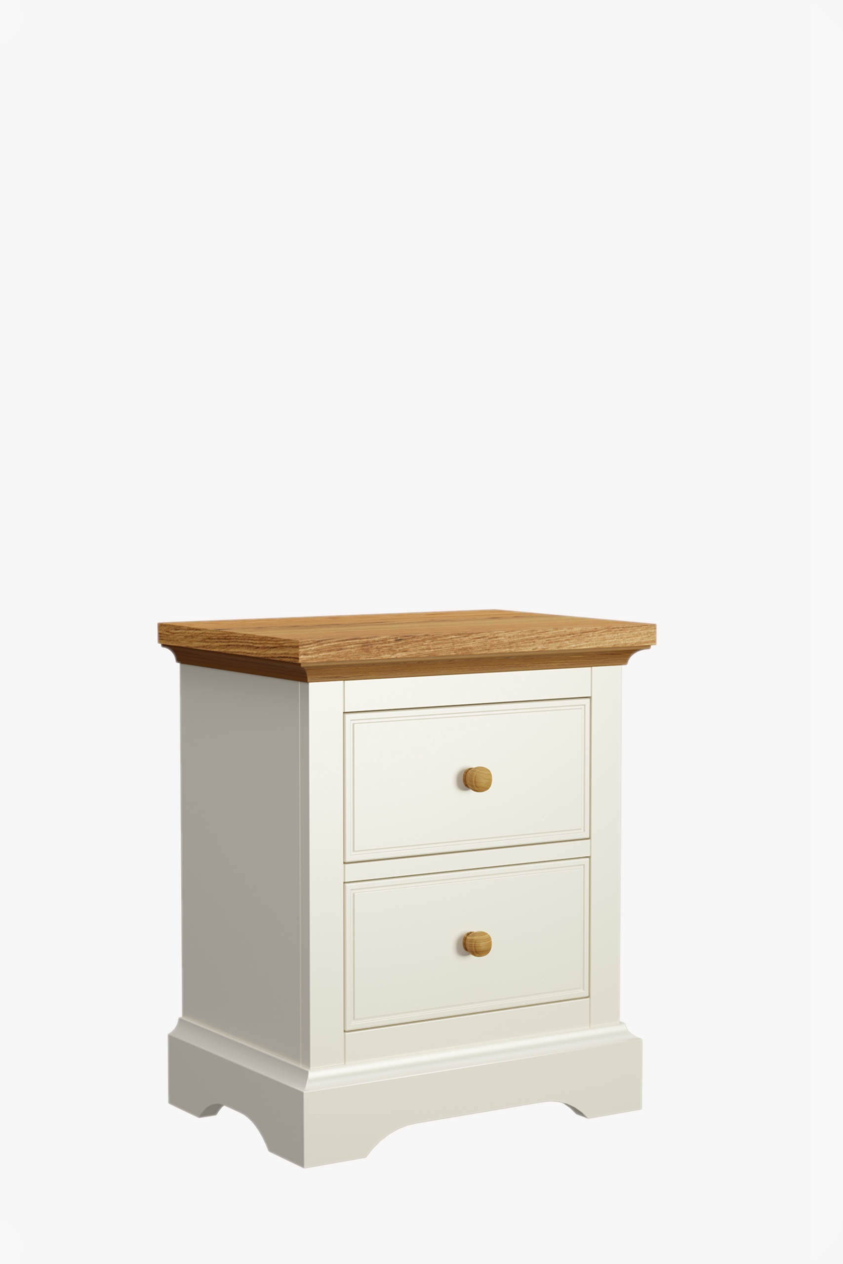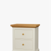 The Laura Ashley Oakham 2 Drawer Bedside Table provides generous storage within a compact and convenient footprint. The subtle country styling fits with many decorative settings; the inscribed drawer fronts, cut-out plinth and cornice top elevating its character above the everyday. Solid wood is used throughout; the drawers have solid oak knobs and are mounted on traditional wooden rails. Finally, the top is finished with solid oak and oak veneer and the body has a contrasting satin paint finish.