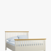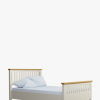 The Laura Ashley Oakham Bed Frame beautifully complements the rest of the range, echoing the subtle country styling of tapered legs and cornice tops. Solid wood is used throughout, the head and footboard rails are finished with solid oak and oak veneer whilst the rest of the frame has a contrasting satin paint finish. The bed uses sprung slats for a supportive and ventilated mattress base.