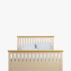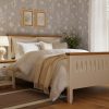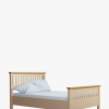 The Laura Ashley Oakham Bed Frame beautifully complements the rest of the range, echoing the subtle country styling of tapered legs and cornice tops. Solid wood is used throughout, the head and footboard rails are finished with solid oak and oak veneer whilst the rest of the frame has a contrasting satin paint finish. The bed uses sprung slats for a supportive and ventilated mattress base.