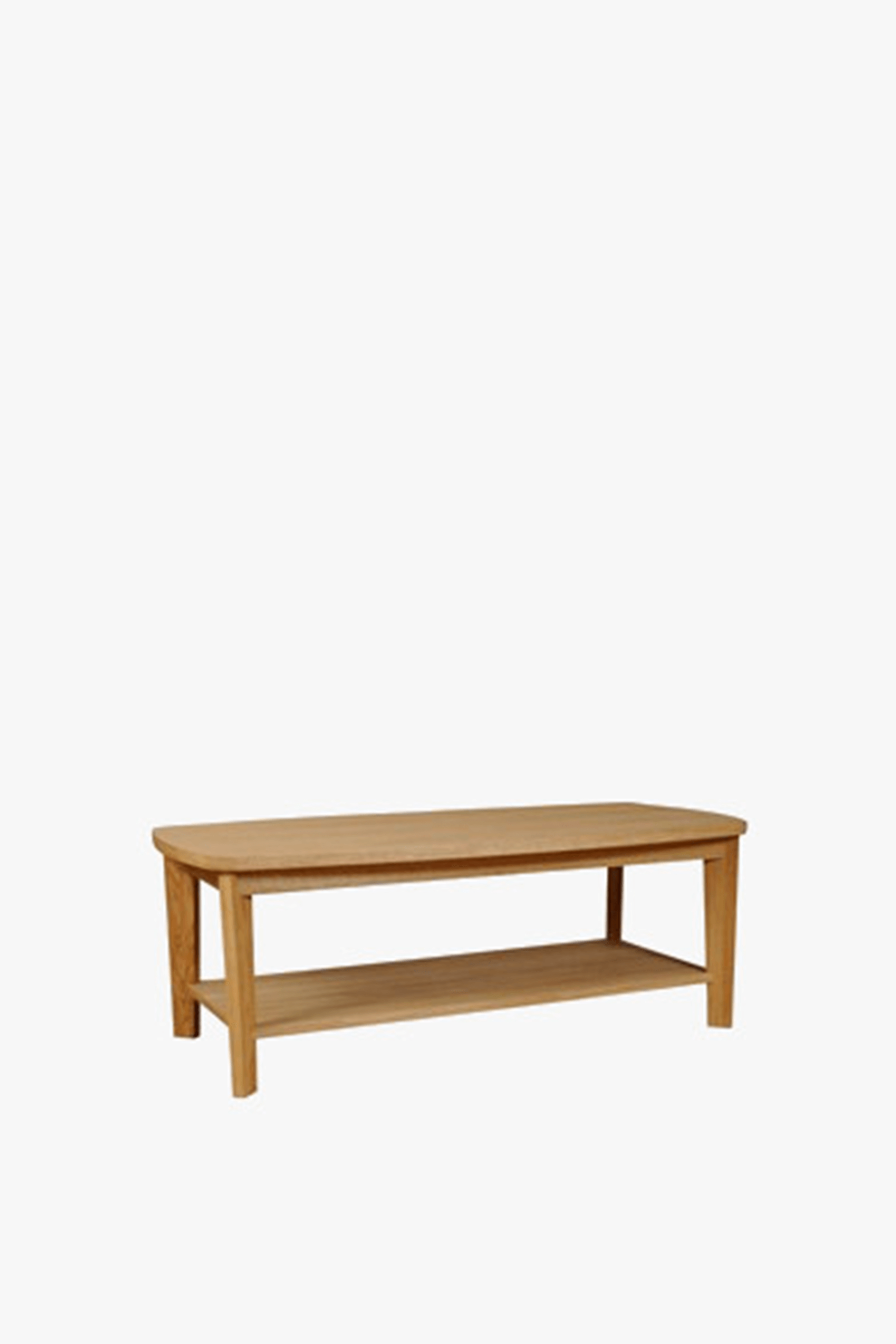 Read morePart of the Orbit range of cabinet furniture, this clean and modern coffee table features a softly curved top, tapering legs and a useful shelf. Matt-oiled oak construction.