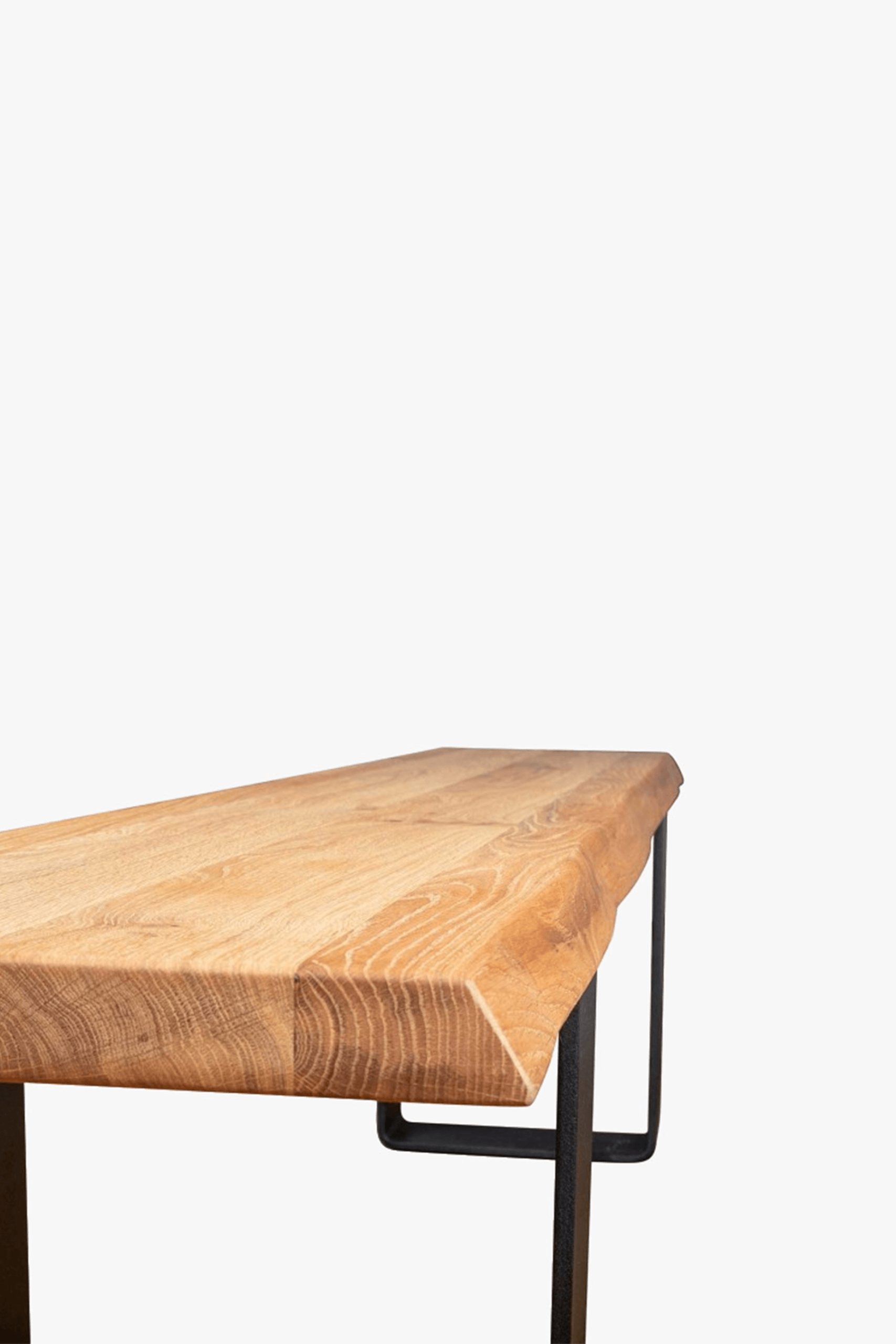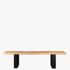 Heal’s Designed by You collection of dining tables and benches allows you to create the perfect table for your space. Our tables are made of solid oak or walnut in an oiled finish and are available in five lengths, two widths, and six different wood finishes and three different edge profiles to create a table that is the perfect fit for your home. Grain, knots and cracks are a natural property of all solid wood and add beauty and interest. Each piece is unique and will have a different grain pattern and variances in shading and colour. This is the charm of solid wood and is a different look to veneers which are more uniform. The oiled finish will enable the table to last a lifetime with a little love & care. Our exclusive Prague bench from our Designed by You range has a with a wide metal leg for the perfect modern industrial look.