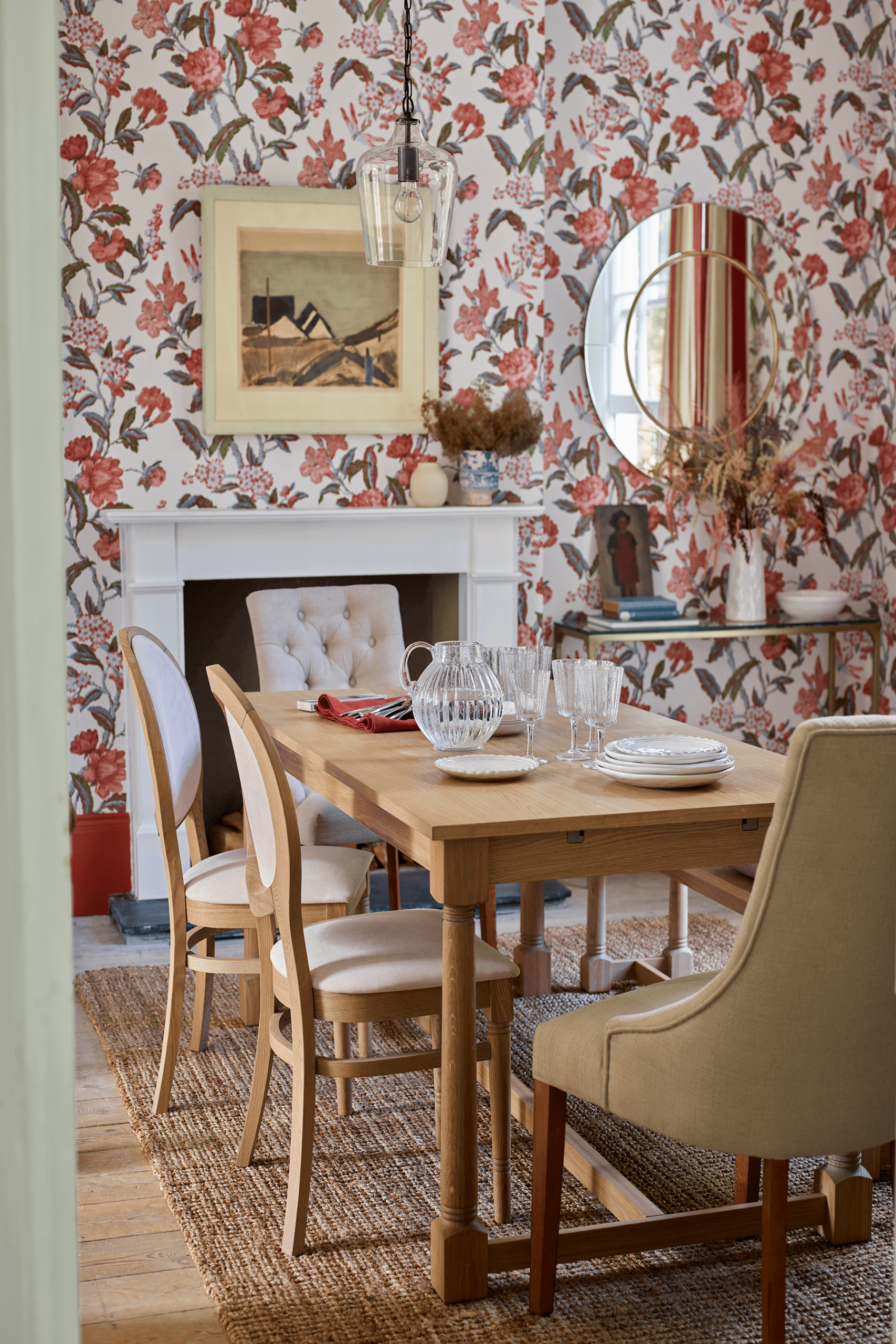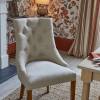 Whatever their use, the graceful contours of the Laura Ashley Redshaw pair of dining chairs exude period charm. Upholstered in a natural chenille fabric and complemented by the rich honey stained legs they will surely grace any setting. With deep buttoning on the back and a curved frame designed to hug, this timeless look has enduring appeal.