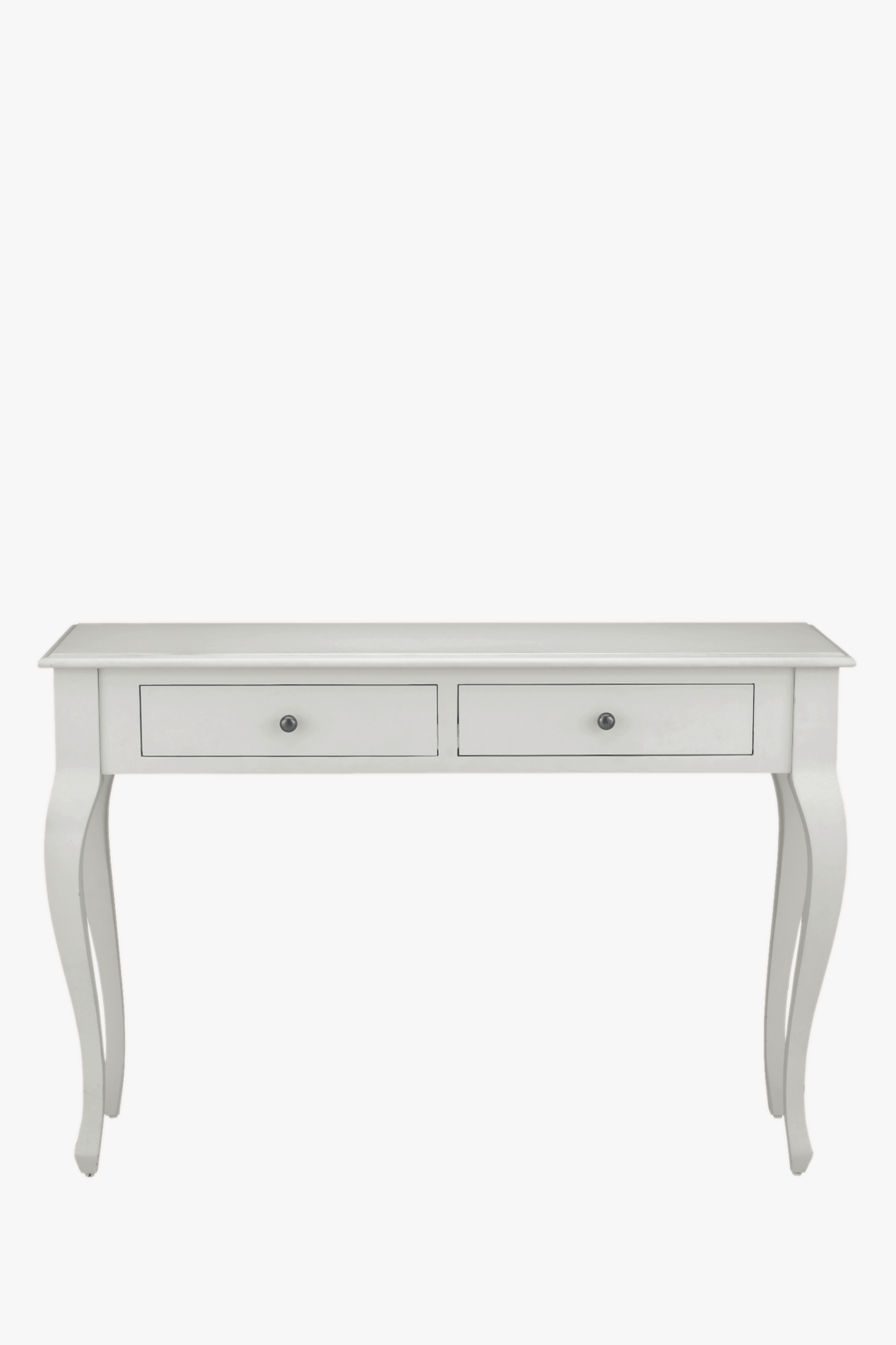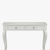 The Laura Ashley Rosalind 2 Drawer Console Table borrows from the elegant shaping of French Rococo furniture but applied in a more restrained and contemporary fashion. The table is equally at home against a wall or behind a mid-room sofa and features a two traditionally mounted drawers dressed with pewter effect knobs. The top is characterised with pretty bevelled edges and all surfaces are given a graceful yet durable painted finish. Only the legs need to be attached to begin enjoying this piece; full assembly is not required.
