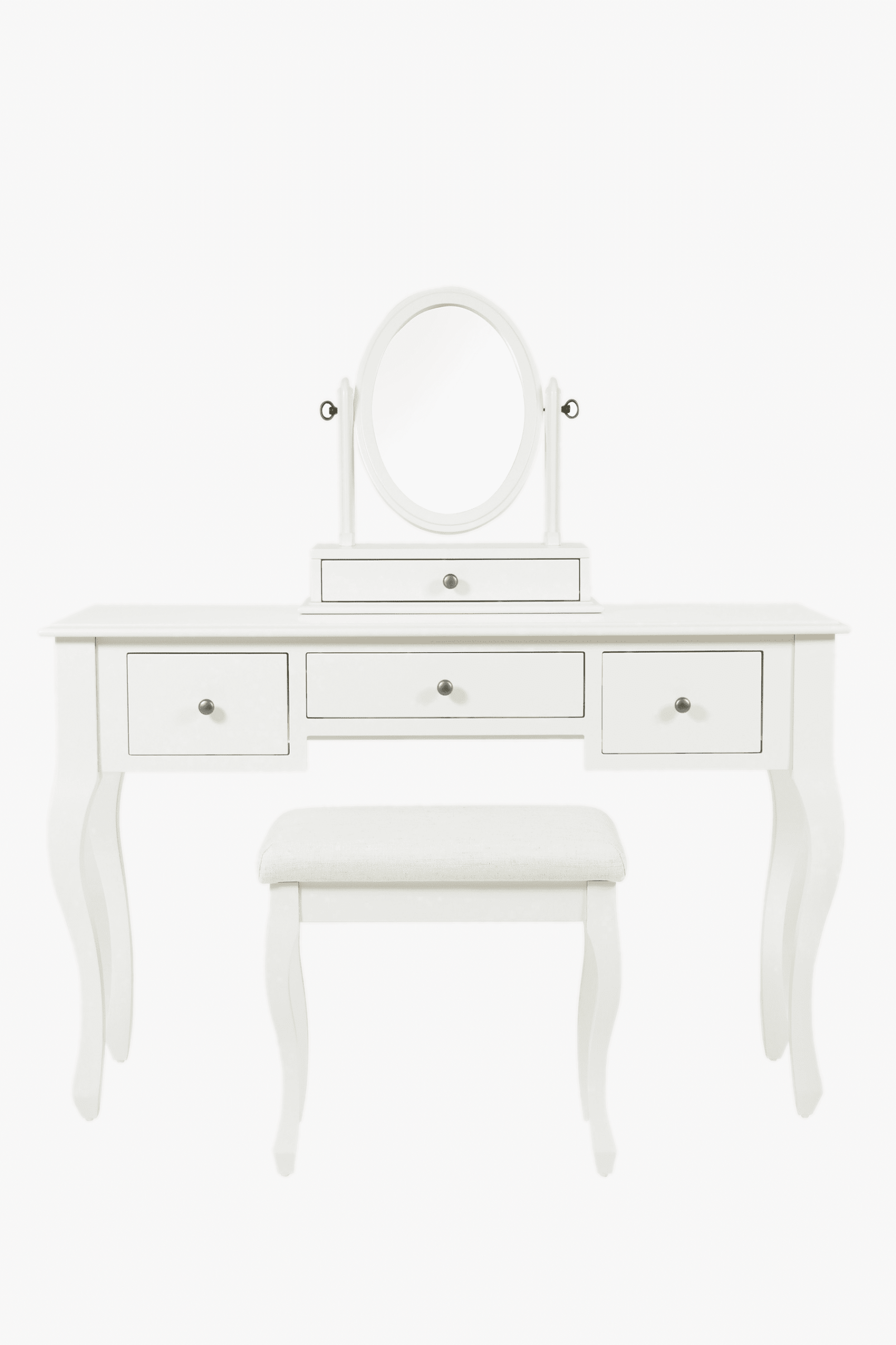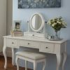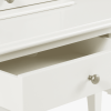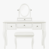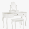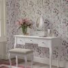 Pride of place in a Rococo style bedroom must surely be the Laura Ashley Rosalind 3 Drawer Dressing Table set. Elegant and yet practical, the table offers three traditionally mounted drawers for all manner of dressing accessories. A pretty dressing stool, upholstered in a complimentary woven linen-mix fabric accompanies the table. A tilting oval mirror set upon an additional drawer completes the set. The table top is characterised with pretty bevelled edges and all surfaces are given a graceful yet durable painted finish.