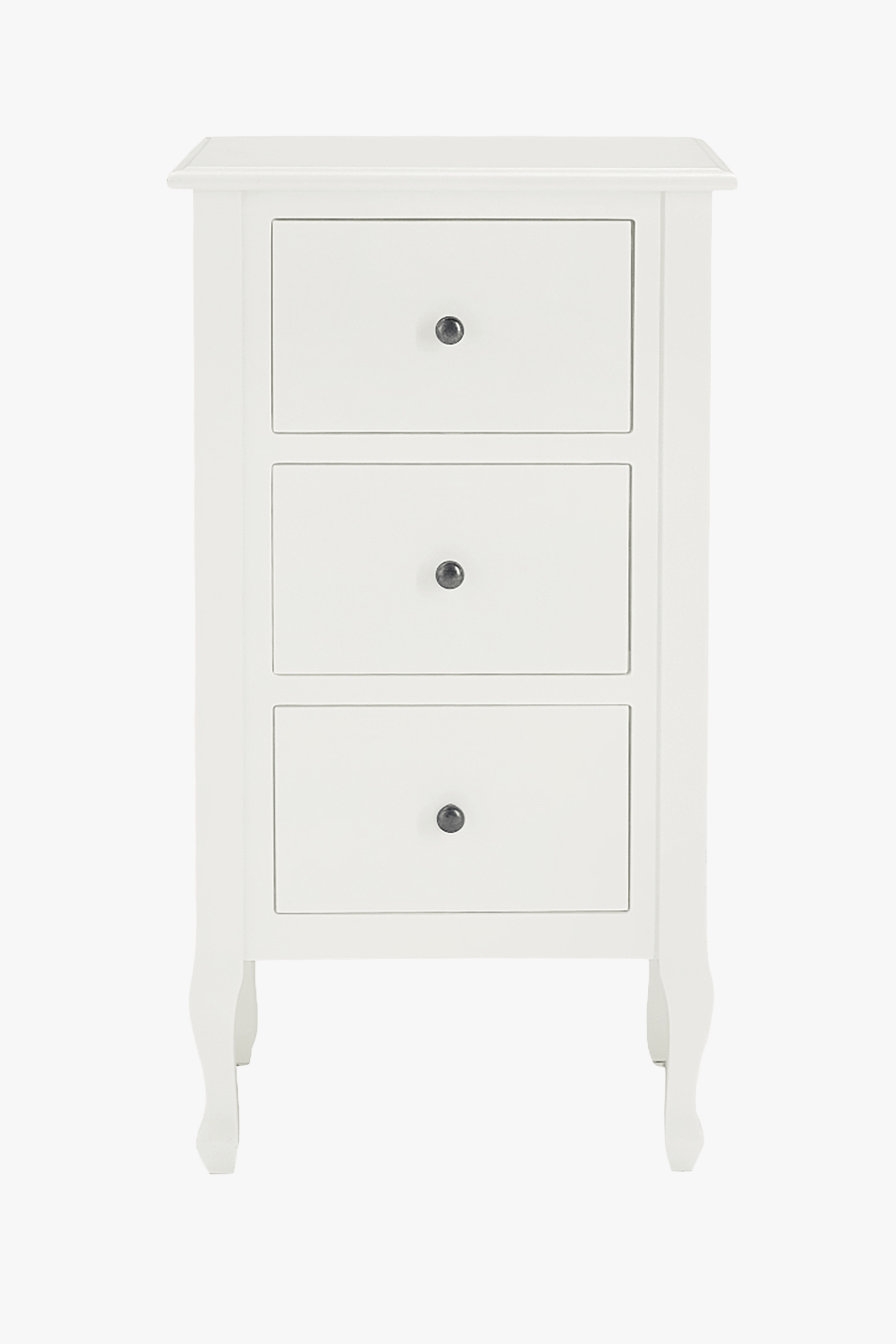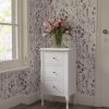 The Laura Ashley Rosalind 3 Drawer Tall Chest continues the theme of French Rococo furniture with handsome proportions and elegant shaping but in a contemporary fashion. The chest features three traditionally mounted drawers of equal size all dressed with pewter effect knobs, providing an attractive and practical configuration. The top is characterised with pretty bevelled edges and all surfaces are given a graceful yet durable painted finish.