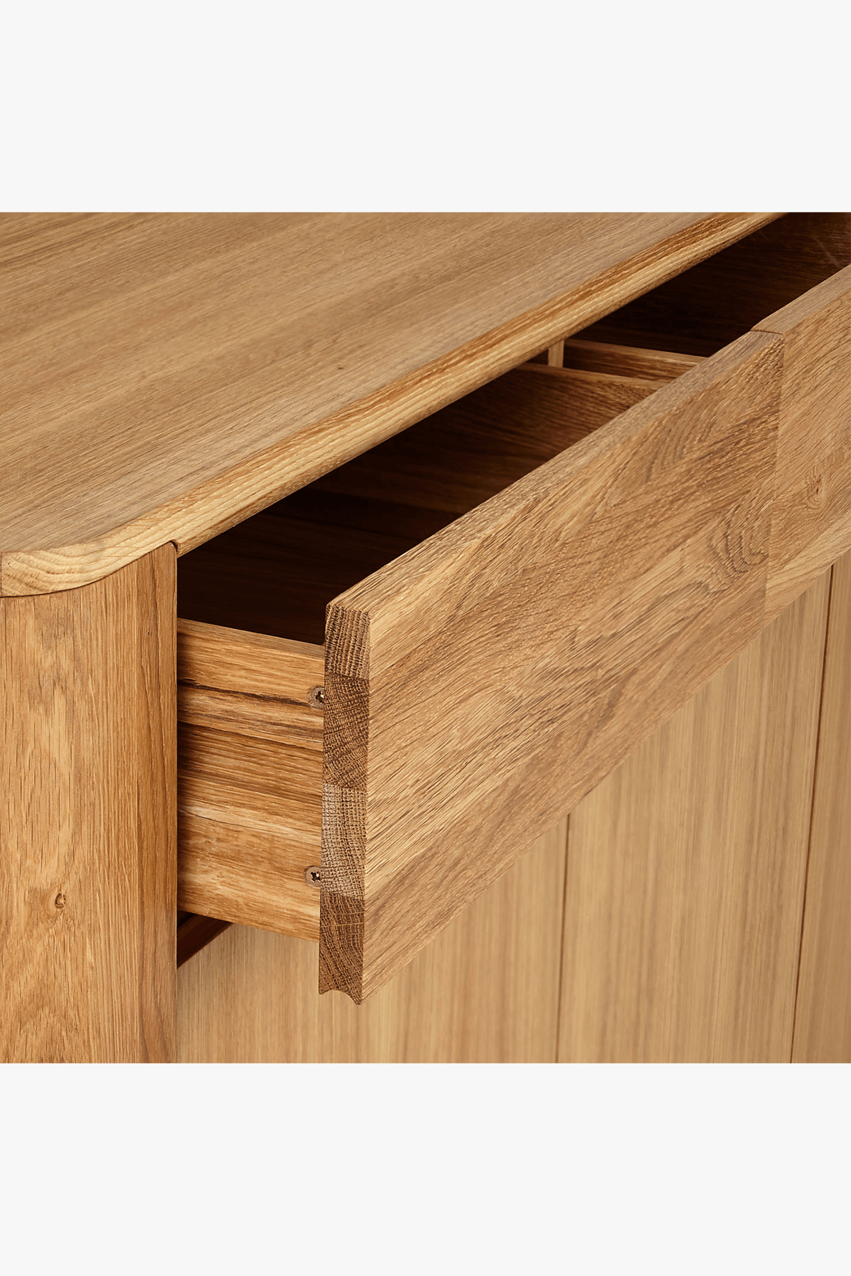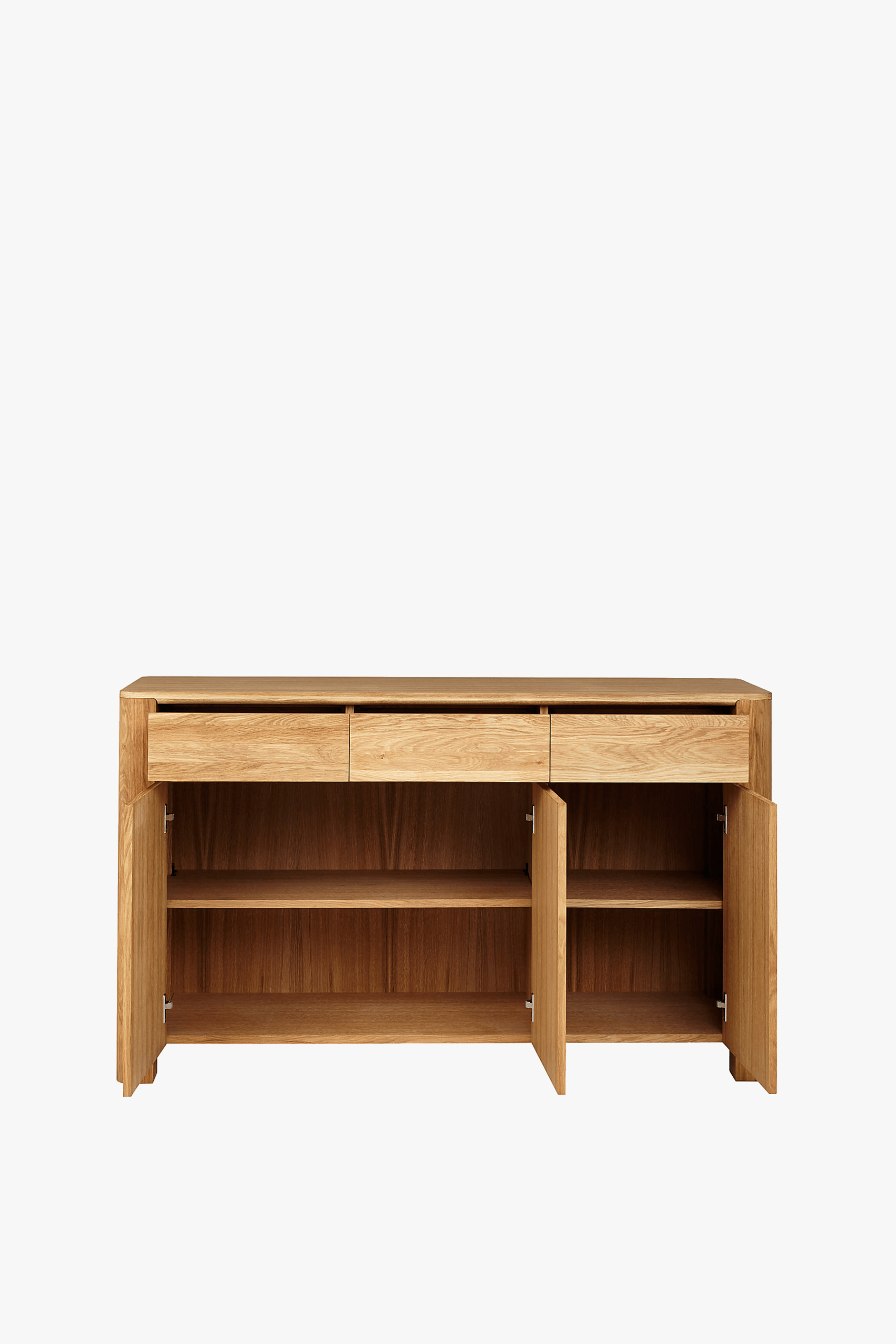 Made from the highest quality solid oak & oak veneers, the comprehensive Seymour range will appeal to those looking for furniture that is contemporary yet minimalist in design. Simplicity and functionality are the selling features of the Seymour range. Employing simple lines and imaginative design,Seymour furniture shows off the natural splendour of wood. Seymour range comes hand finished with natural Danish oil. Features three deep storage drawers, one double and one single cupboard with an adjustable height shelf inside each of them. Legs, corners and top edges rounded and smooth. Available in A grade only – clean, contemporary look.