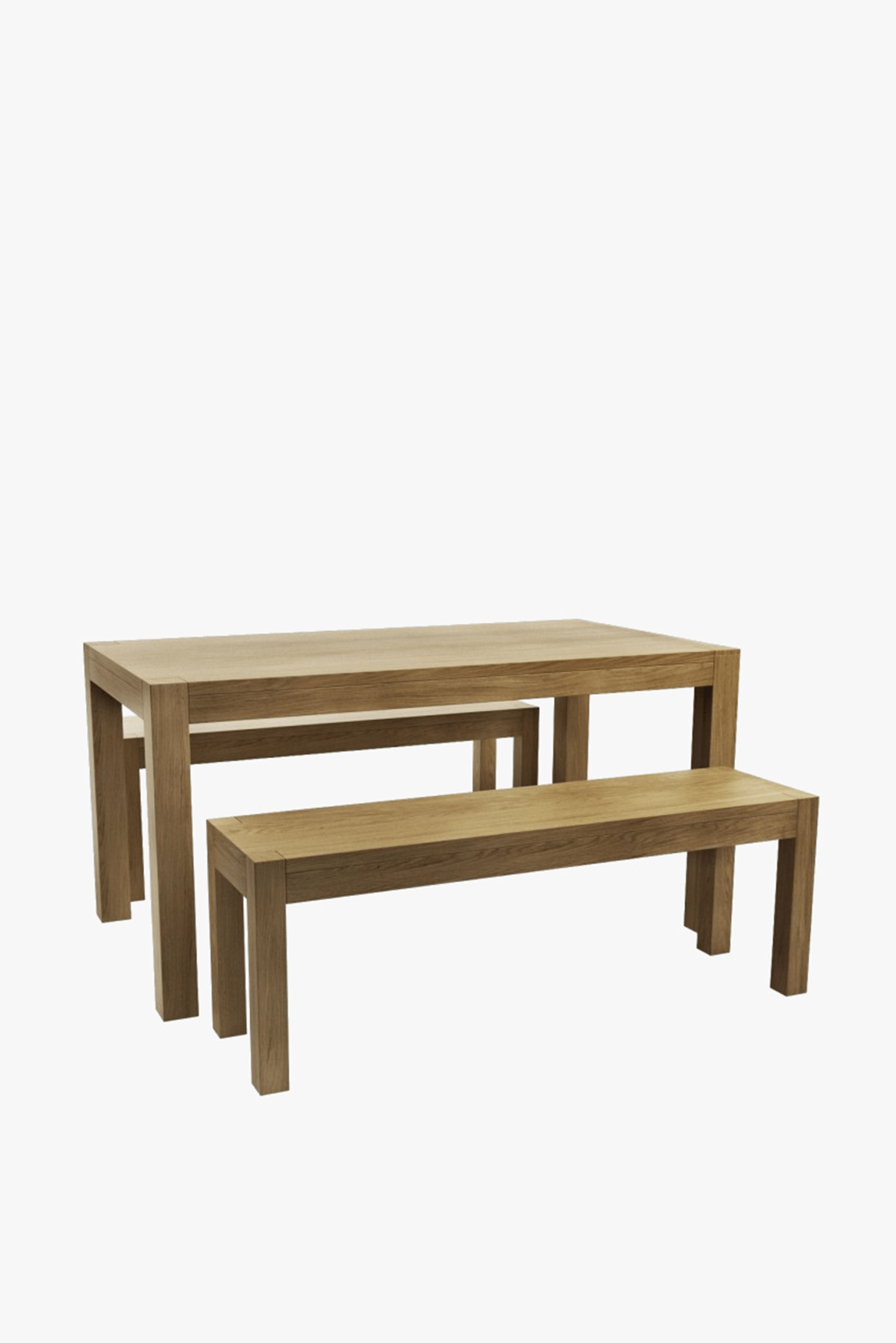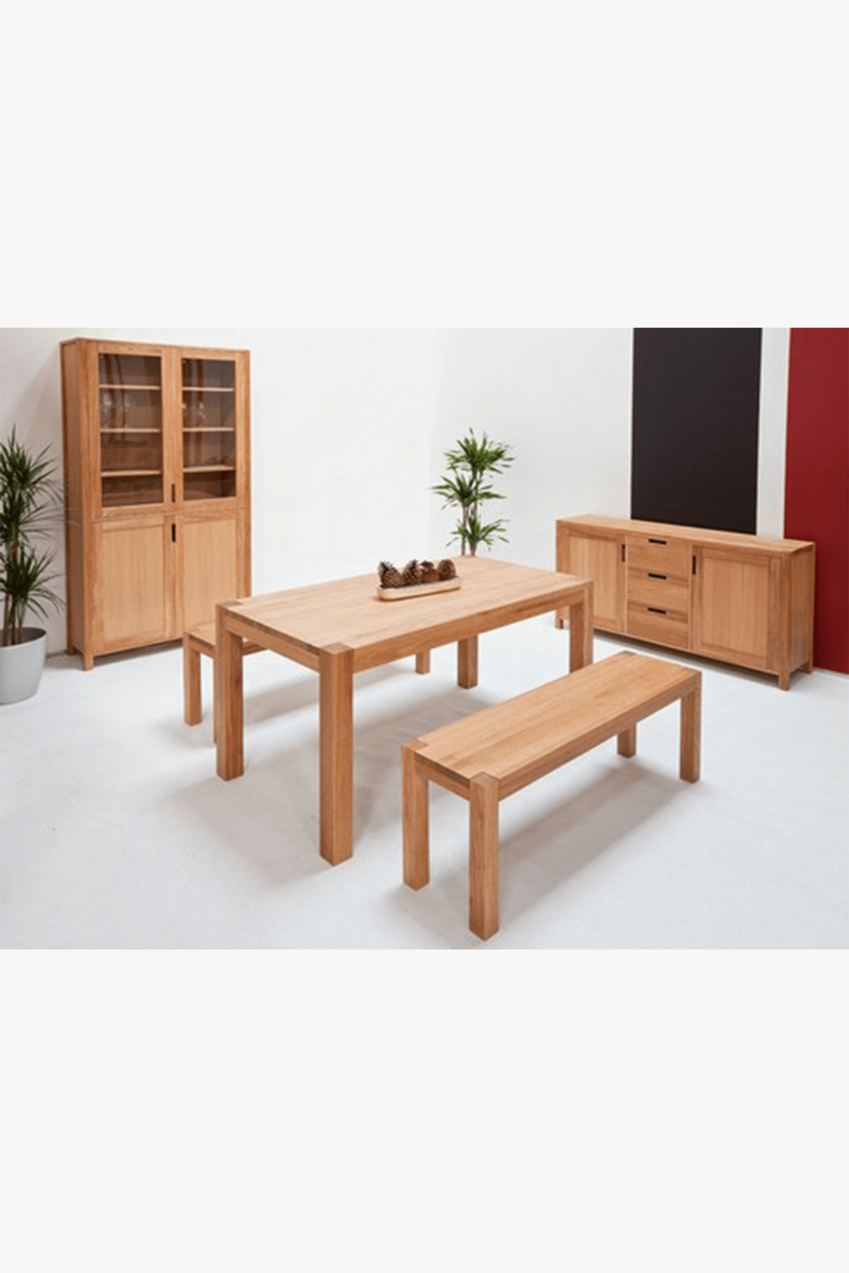 Made from the highest quality oak, the comprehensive Sims range will appeal to those looking for furniture that is contemporary yet minimalist in design. Simplicity and functionality are the selling features of the Sims range. Whatever piece of furniture you choose from the Sims range, it is sure to blend in with the rest of the interior and serve its purpose. All main visible surfaces are made from completely solid oak and are meant to endure modern family life. Handle free fronts enhance the minimalist look while cut-out handles add a nice feature to the drawers and doors. The six-seater dining table is of the right size to be functional enough in a kitchen while still big enough for a dining room of a decent size home. Chair seats can be upholstered in a variety of leathers and fabrics. The Sims range comes finished in natural linseed oil, but can be ordered in a variety of stained colours and finished with lacquer. Minimalist and modern design with legs coming through the top. Available in A grade only – clean, contemporary look.